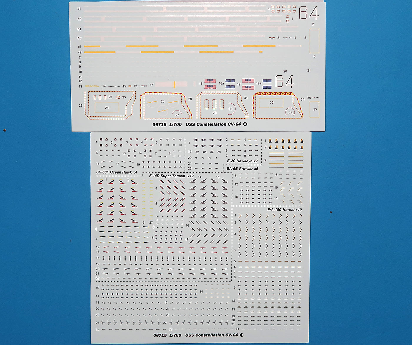 - Два литника с E-2C Hawkeye. По одному самолету с тарелкой на литник