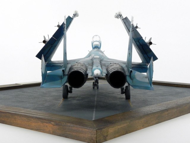 Мне нравится. Хорошо получилось. Но... Думаю зря делали лючки на капотах. Толсто смотрятся. Или я ошибаюсь, и они родные из набора? Я бы не стал проливать расшивку на ракетах. Кому-то нравится такой окрас резины. Мне не очень. Слишком разнородный окрас резины, на мой взгляд. Крыло должно ложиться на киль. Про попадание в цвет говорить не совсем верно, так как все они выгорают по разному и не одинаково. В целом работа хорошая.