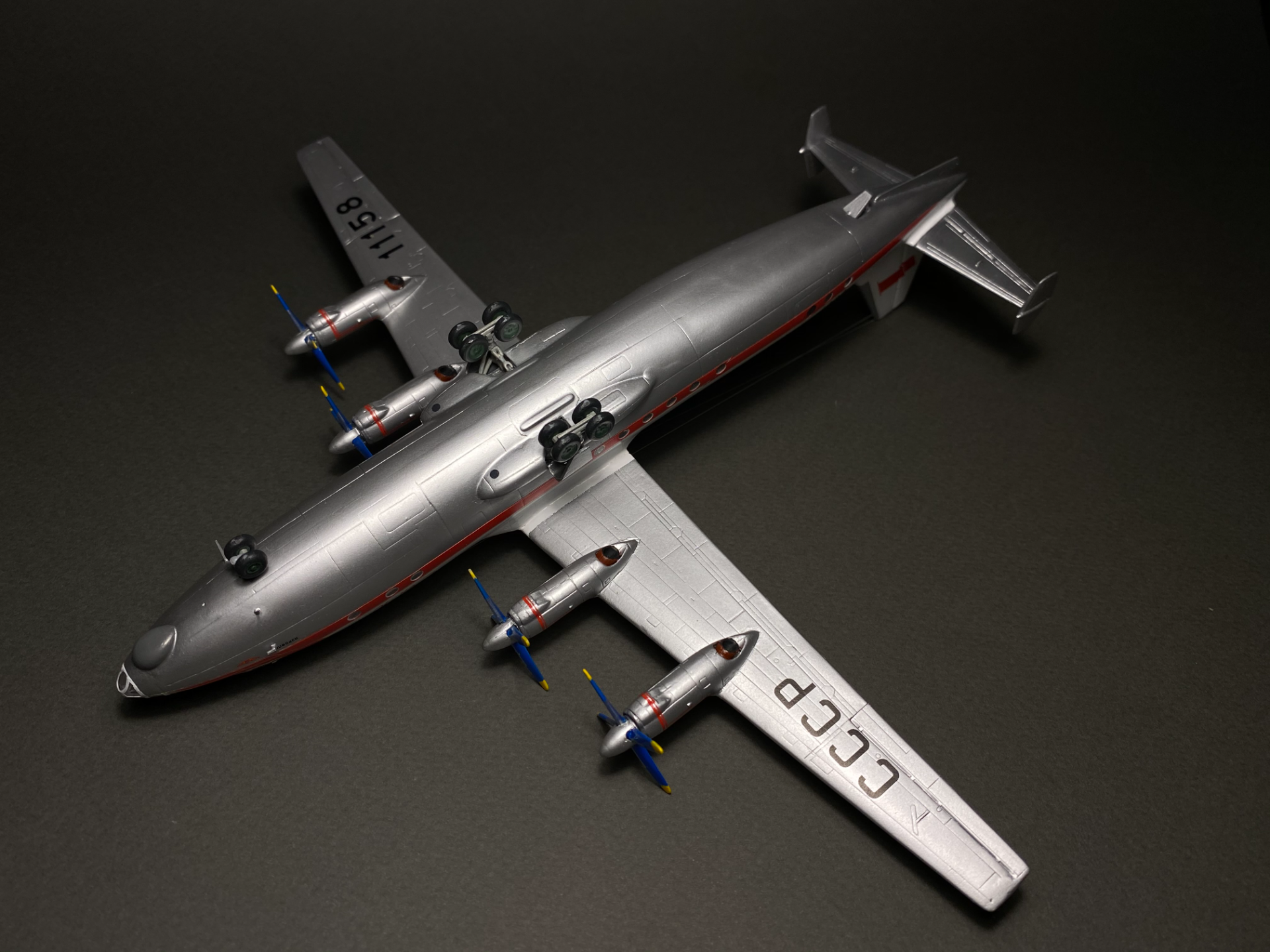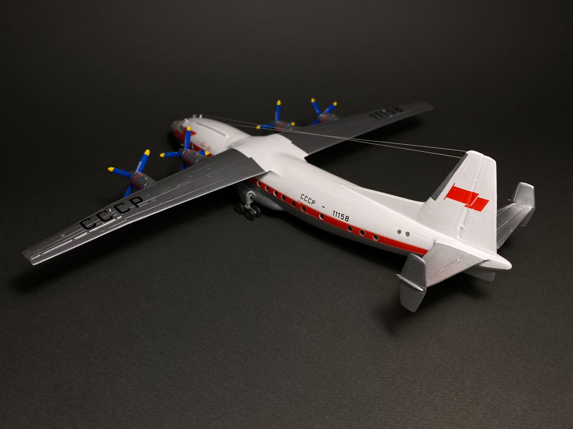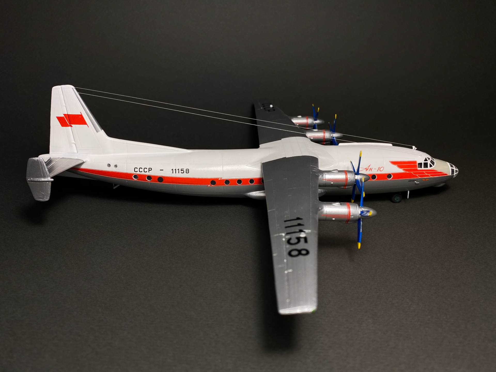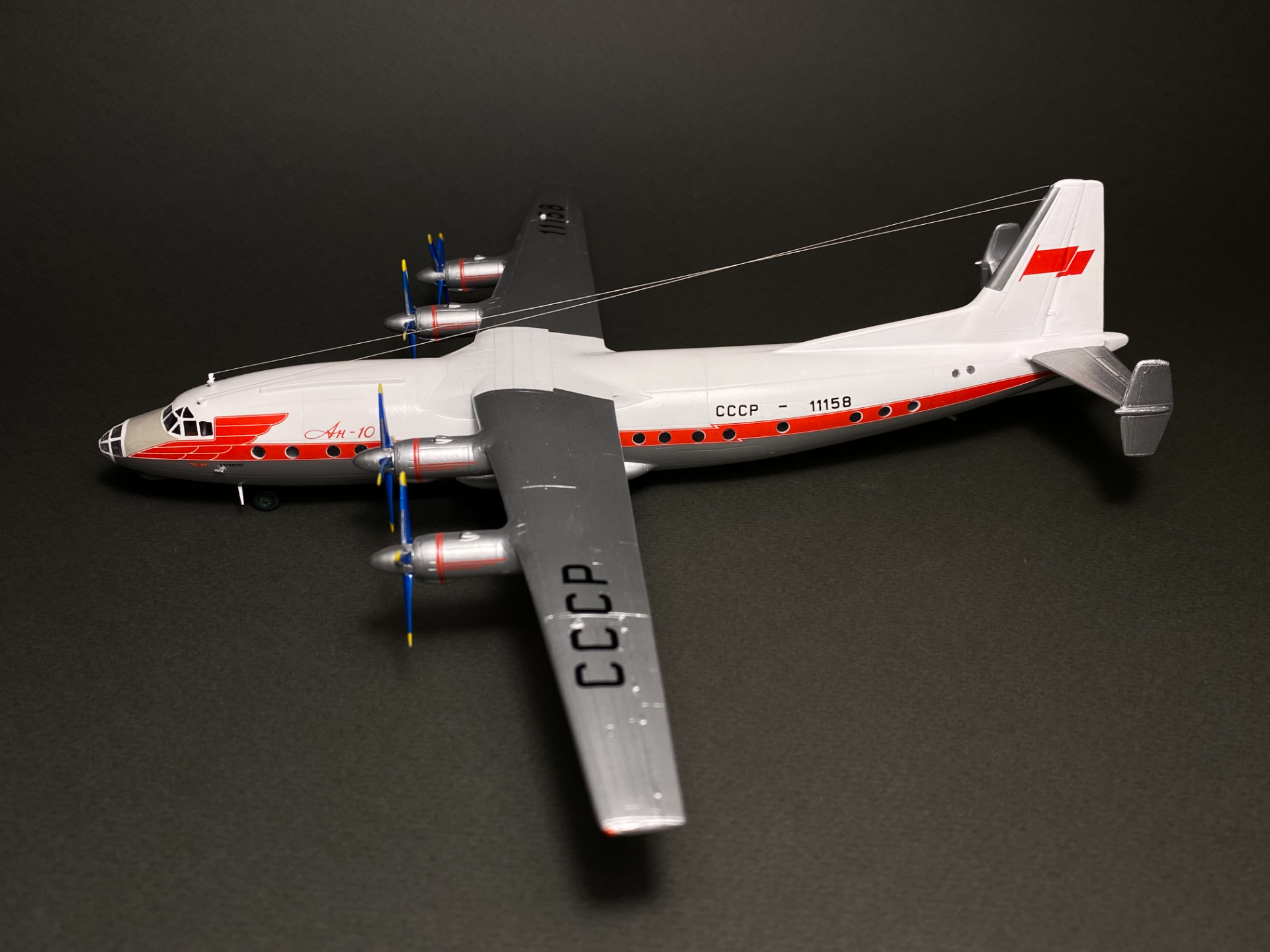 Завершилась стройка модели Ан-10 Аэрофлота с бортовым номером СССР-11158 от Восточного Экспресса. Производитель славится своей не идеальной стыкуемостью деталей поэтому пришлось обильно поработать шпаклевкой и наждачной бумагой. Собирал из коробки с доработками в виде натяжной антенны из окрашенной моно-нити и антенн из крышки доширака. Иллюминаторы были сделаны с помощью Micro Kristal Klear. Красил Tamiya белый TS-26, серебряный TS-30. Декали родные.