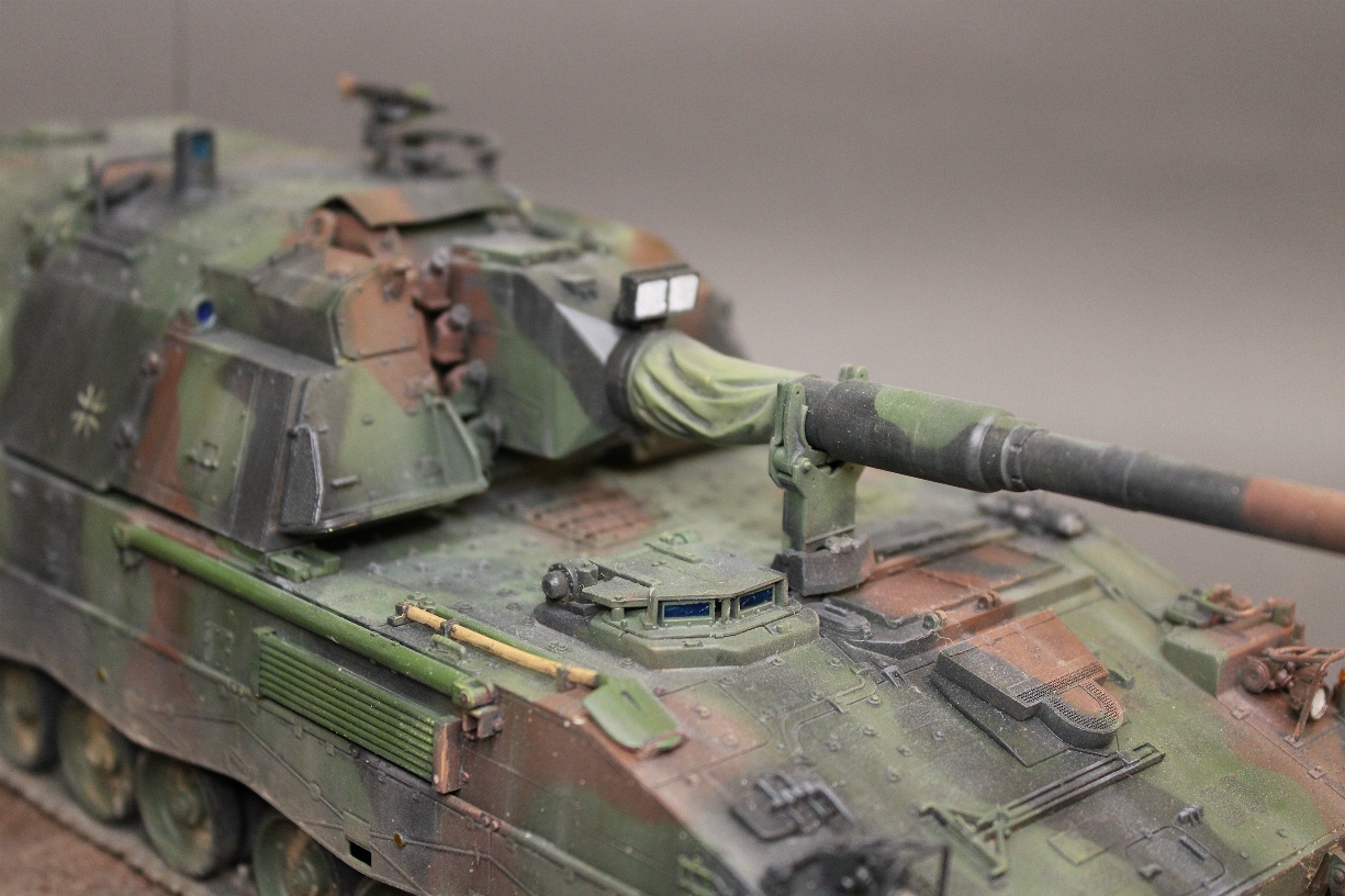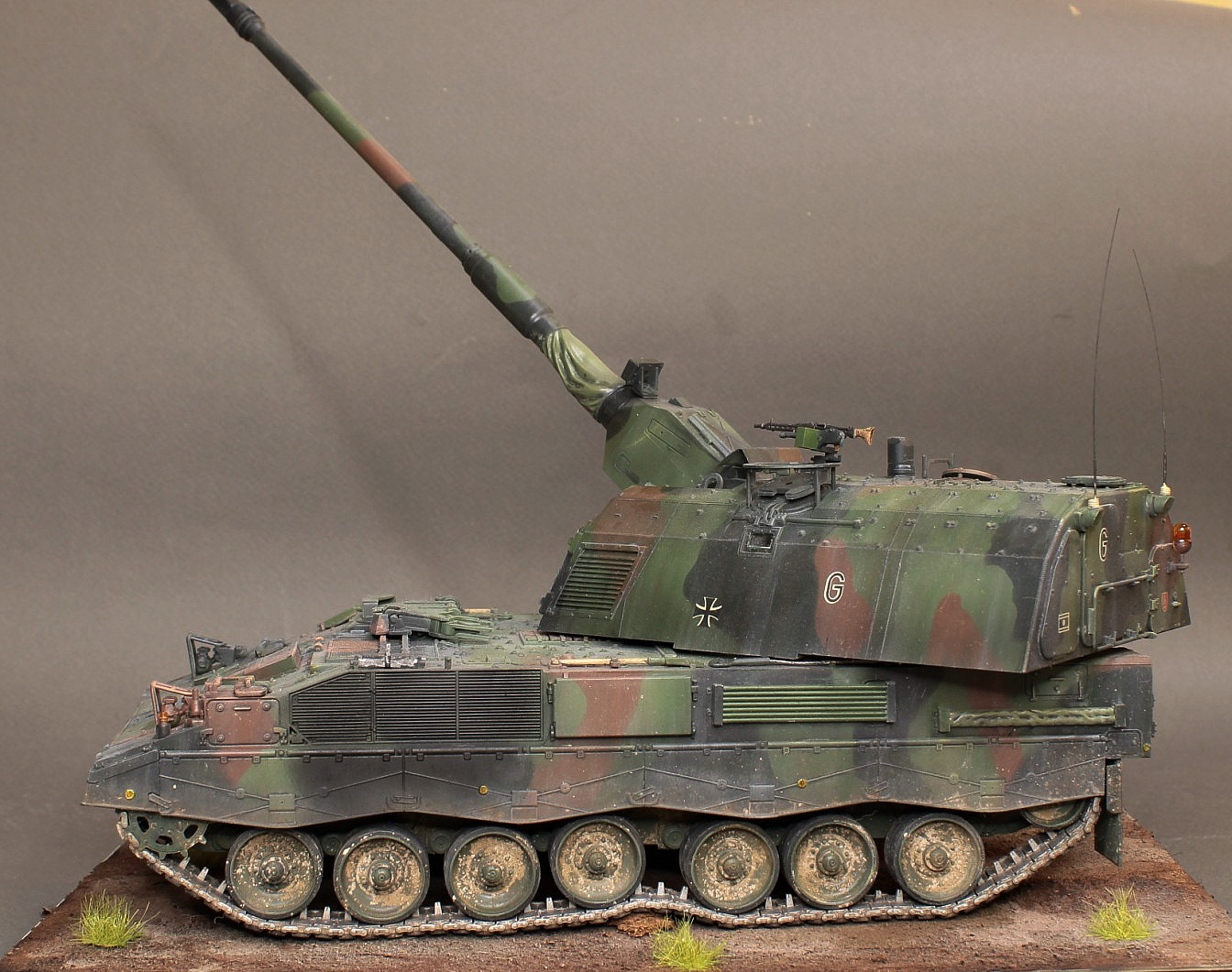 По сборке модель отличная,Менг-что сказать,собирать такие модели одно удовольствие.Стыковка идиальная,как и качество пластика,из дополнений только гусянки от Бронко.Подвеска рабочая,ствол подвижный,модель на пятерочку.