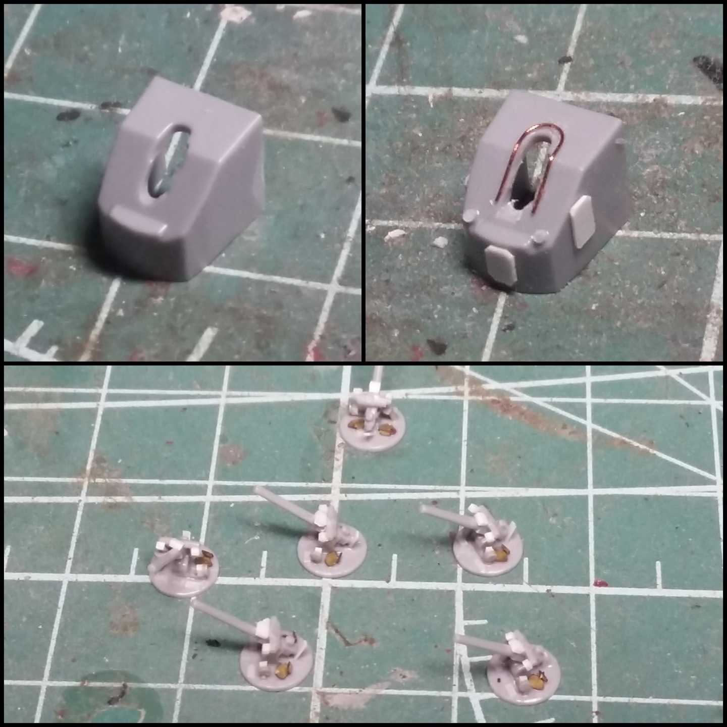 Детальных фото этой части конструкции конечно же нет, если Вы приподняли третью зенитку немного повыше, чем первые две, то это сделали абсолютно правильно. Хотя по фото это совершенно незаметно (но на то оно и фото.....)