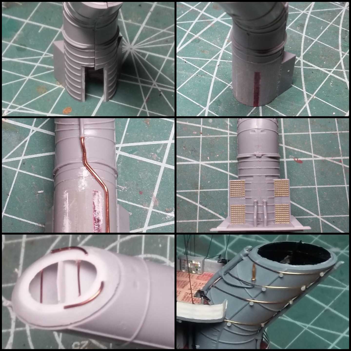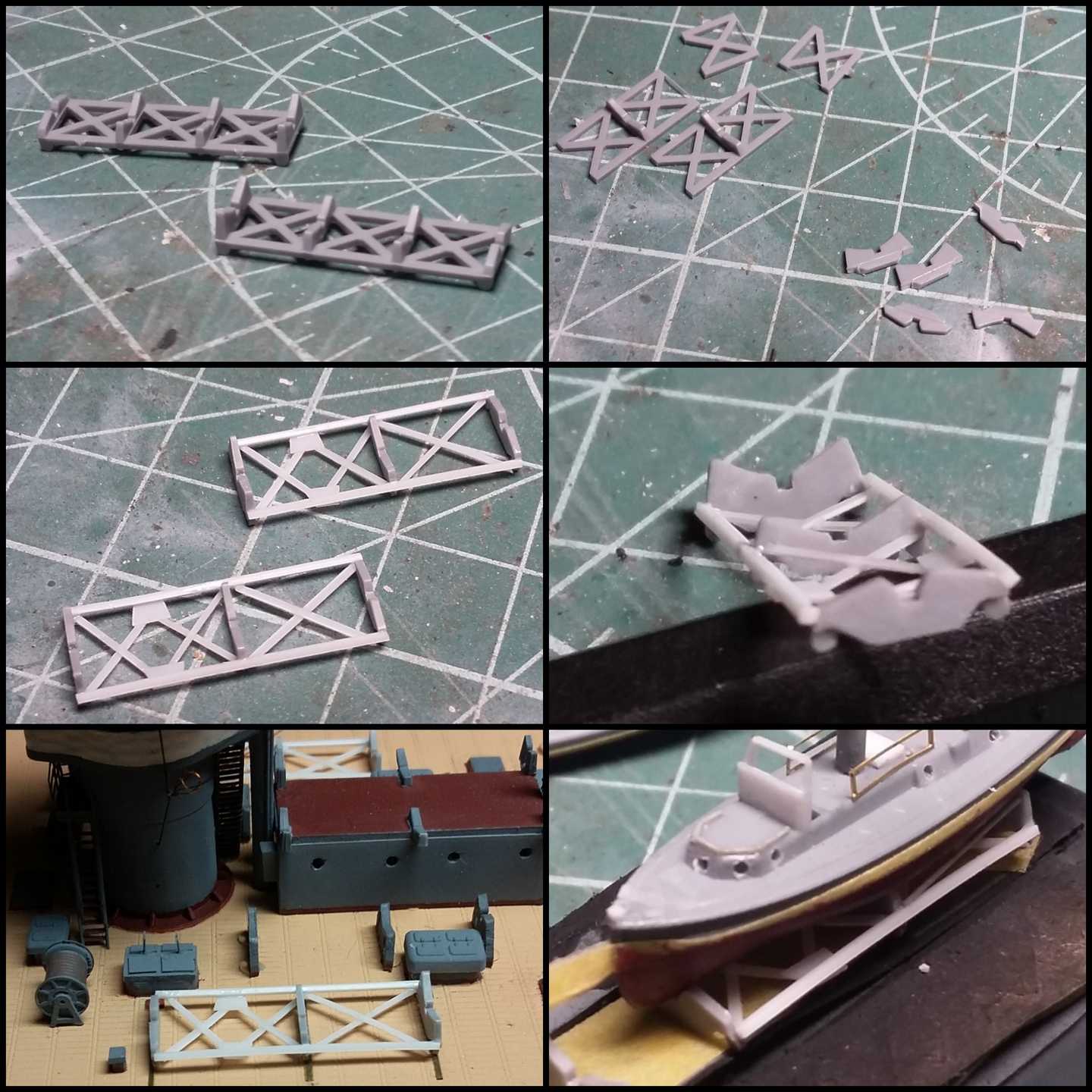 Больно пустая получилась площадка между рубкой пелорусов и носовой трубой. Там впереди по бокам от трубы ящики, похоже для сигнальных флагов?