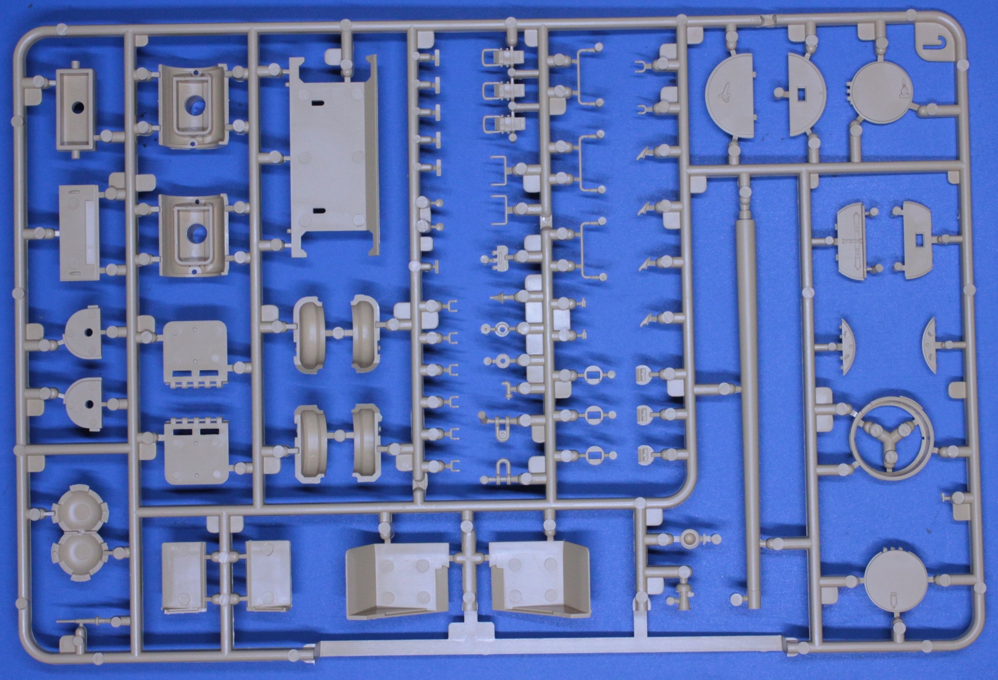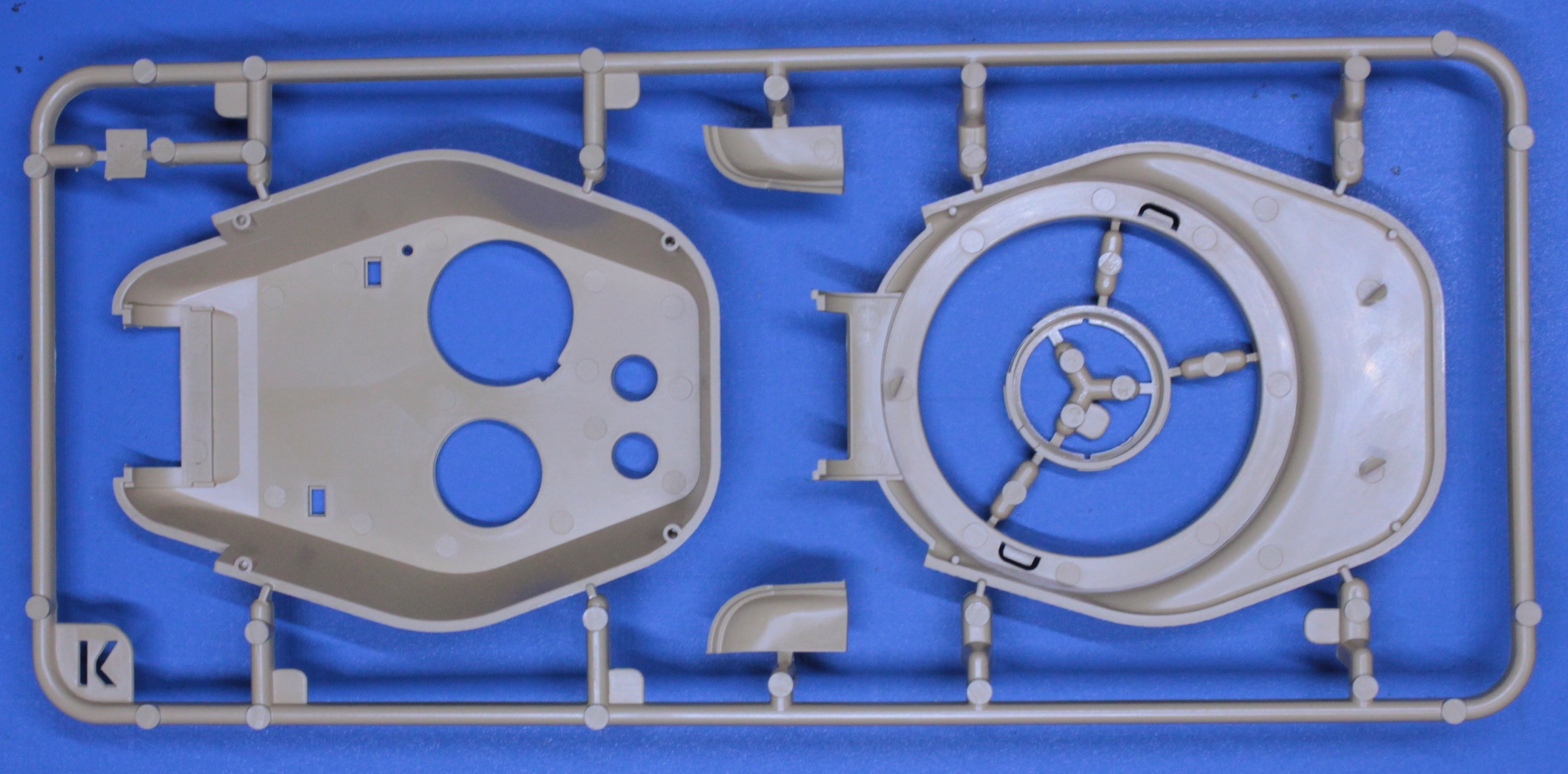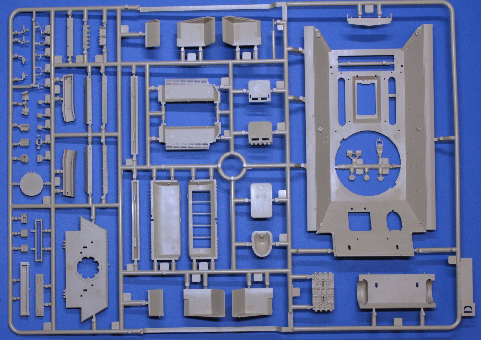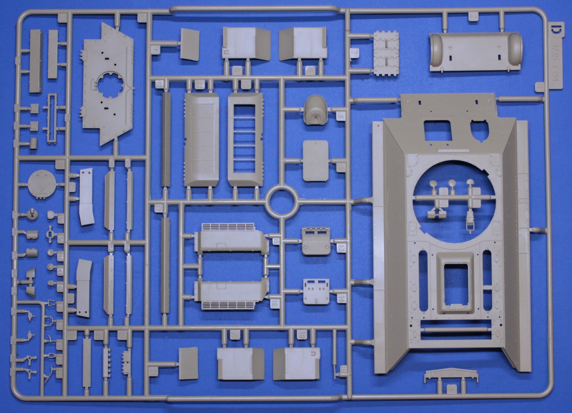 Приветствую всех. Три недели назад получил коробку с набором Т-34/85 от RFM кататложный номер RM 5040. Решил показать, что предлагает нам известный производитель. Производитель предлагает собрать машину выпуска 1945 года 174 завода. Итак, набор упакован в картонную коробку среднего размера. Сам набор содержит 6 литников из традиционного для данного производителя желтого пластика. Все литники упакованы в отдельные пакеты закрывающиеся с помощью липкой ленты. При первичном осмотре утяжин недоливов и т.п. огрехов не обнаружено. На бандажах катков присутствует небольшой литьевой шов, но это не критично и легко убирается с помощью наждачки. Теперь поподробней о литниках. Литник D содержит детали верха корпуса на крышке люка мех. вода симитирована фактура литья, аналогичнау фактуру содержит бронеколпак курсового пулемета, так же на нем симитированы сварные швы. Литник J содержит различную мелочевку, так же ствол орудия, который выполнен одной цельной деталью. Две маски орудия, так же с имитайией фактуры литья. Дана еще одна крышка люка мех. вода. Так же имеются два вида нижней кормовой детали, несколько отличающиеся друг от друга, с имитайией сварных швов. Литник В, их в наборе два, содержит детали для сборки катков, бондажи вданы отдельно от катков. На бандажах содержится надпись 830х150. Литник С, так же дан в двух экземплярах, содержит детали ходовой и различную мелочевку. Два вида накладок на выхлопные патрубки. Траки даны полунаборные, что меня несколько разочаровало. Данный производитель почти во все свои наборы кладет рабочие траки, а тут такой шаг назад. Причем, судя по иснструкции катки, ленивцы и ведущие колеса, при утановке предполагаются подвижными. Т.е. предполагается рабочая ходовая, но траки неподвижные. Скорее всего задел на будущее и в последствии будут дополнительно выпущены рабочие наборные траки. На отдельном литничке даны детали башни, на башне так же симитрована фактура литья и сварные швы. Ванна корпуса дана одной уельной деталью. Так же с имитайией сварных швов. В наборе дана небольшая платка фототравления:. Небольшая декаль на варианты окраски. А вот вместо металлического тросика производитель предлагает воспользоваться нитью. Инструкция по сборке дана в виде книжечки достаточно понятная и информативная, предлагается 4 варианта окраски. Набор покупался в одном из интернет магазинов по цене 2700рублей.