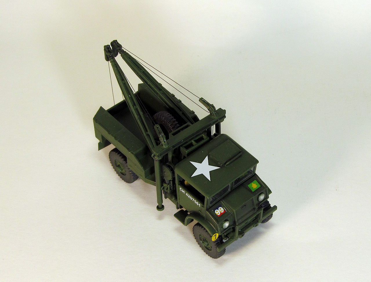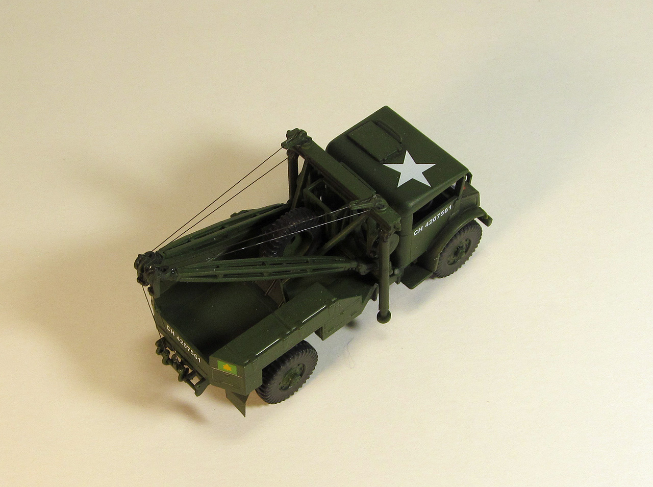 В далёком уже 2016 году, точнее, накануне нового 2017-го, добрый анонимный Дедушка Мороз из Калининграда придарил мне на Новый Год модельку интересного автомобильчика: машину технической помощи на шасси Chevrolet C60S из славного и многочисленного семейства СМР - канадских армейских автомобилей разработанных в начале ВМВ по Британским требованиям канадскими филиалами американских автогигантов Ford и GMC. Почти три года я собирался её построить и вот, наконец-то это знаменательное событие произошло. Ну, гордиться, прямо скажем, особо нечем: собрано просто из коробки, в матчасть не лез, там, знающие люди говорят, всё очень грустно, поэтому просто поклеил по инструкции, в своё удовольствие. Красил аэрографом, акрилом ХоМа, в цвет, я так сильно подозреваю, не попал, но на то, что нарисовано в инструкции, вроде, похоже.