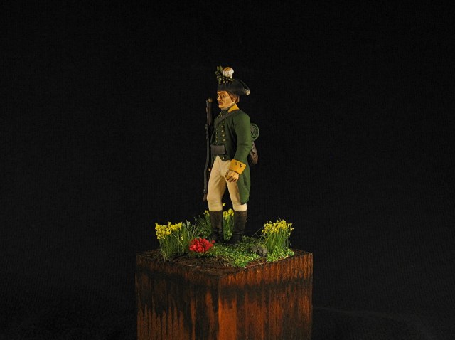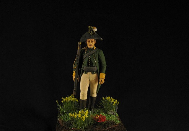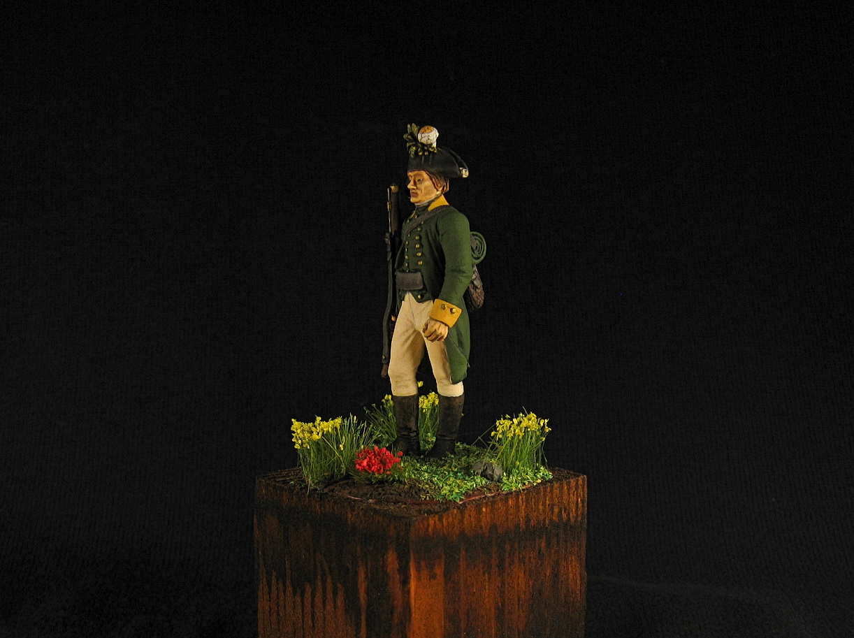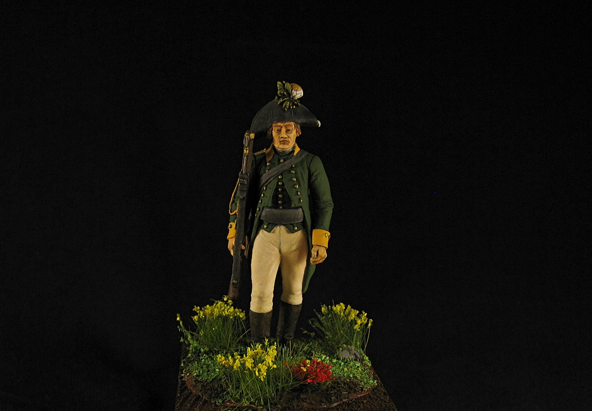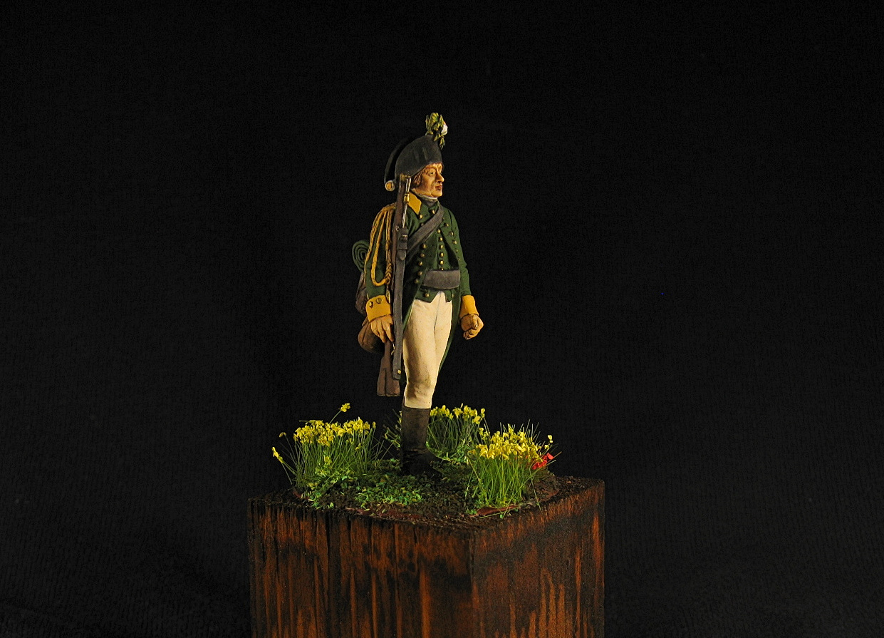 Здравствуйте. Представлен егерь 1 егерского полка (старого) с момента переформирования батальона, до расформирования. Участвовал в Голландской экспедиции 1799 года, в составе корпуса Германа (именовался - полк Сутгофа). 54 мм. Акрил, эмаль.