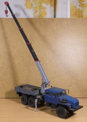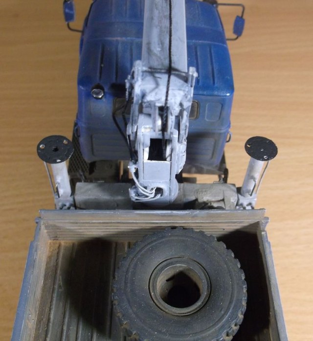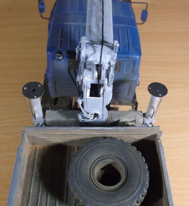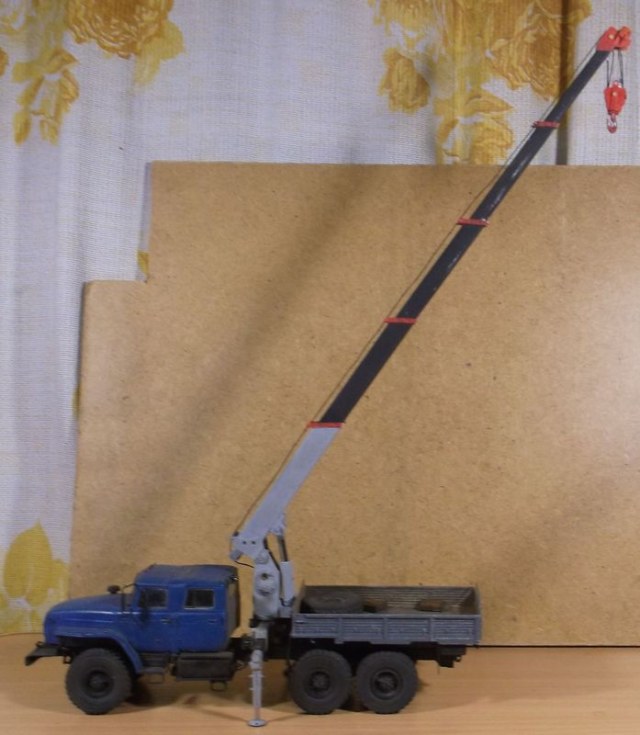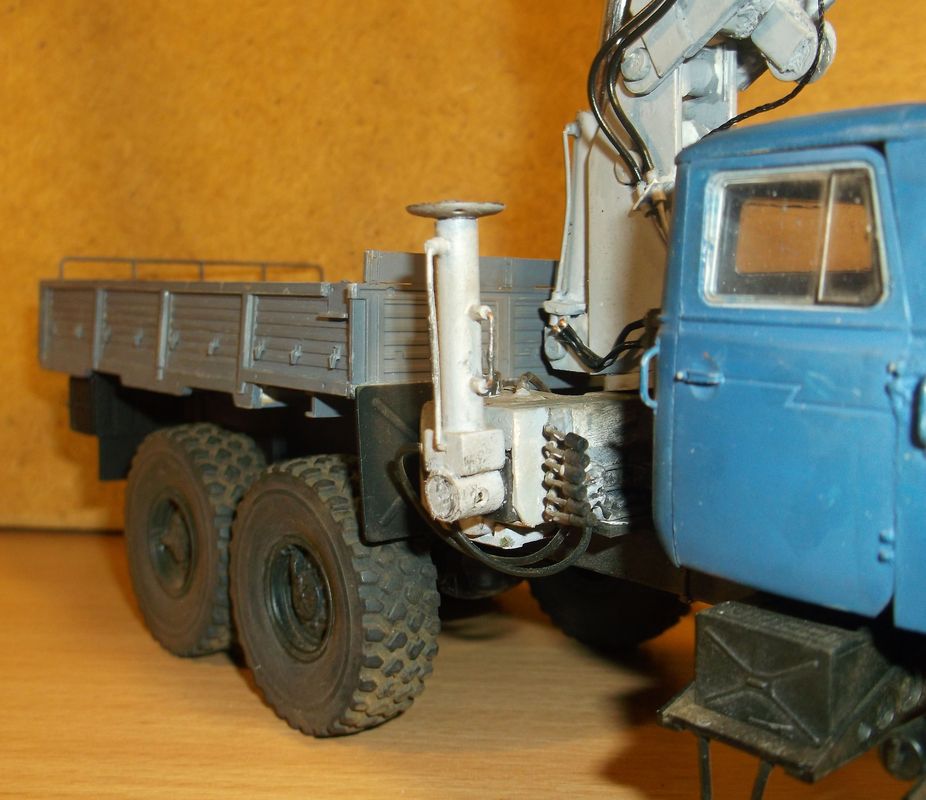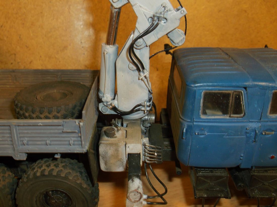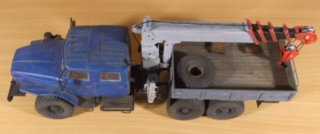 Всем привет! Закончил стройку этого пепелаца и выставляю на ваше обозрение! В дело пошли два УРАЛа, шины от "Бумеранга" или "Панциря" (точно не знаю) и самодельное КМУ производства Александра (Дорик). Классные вещи делает человек! КМУ пришлось подогнать по месту: заузить (чтобы легла в габарит по ширине) и перенести маслобак в другое место. Сильно марать не стремился (не люблю я это дело, да и не умею толком).