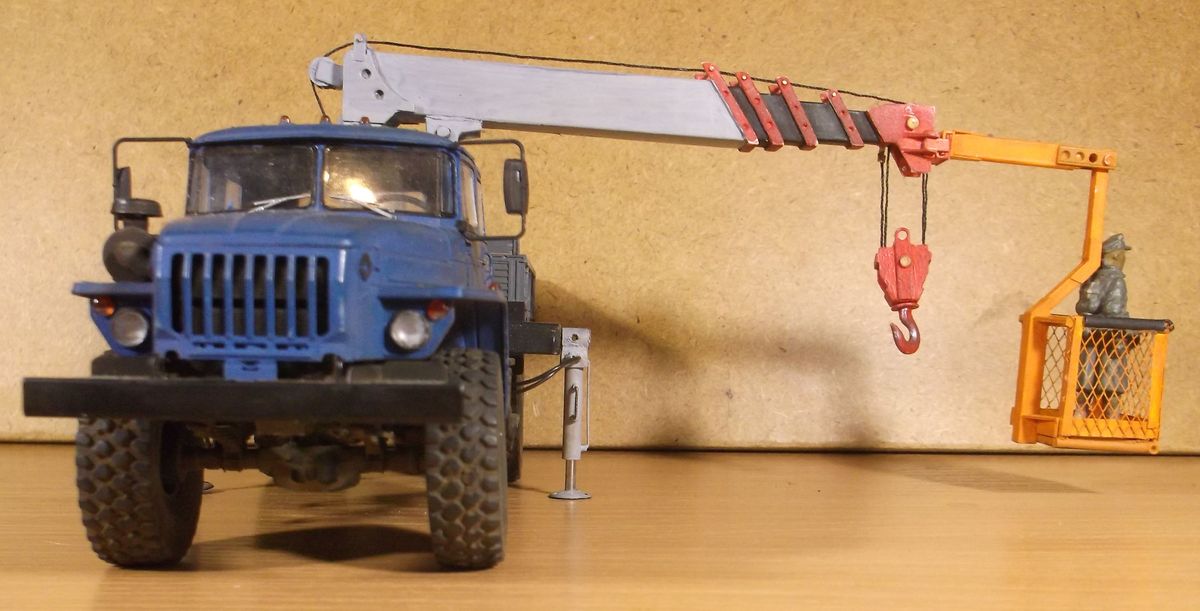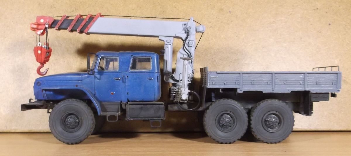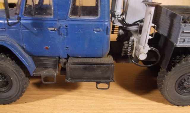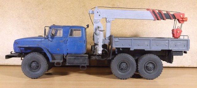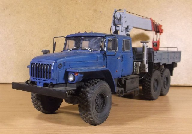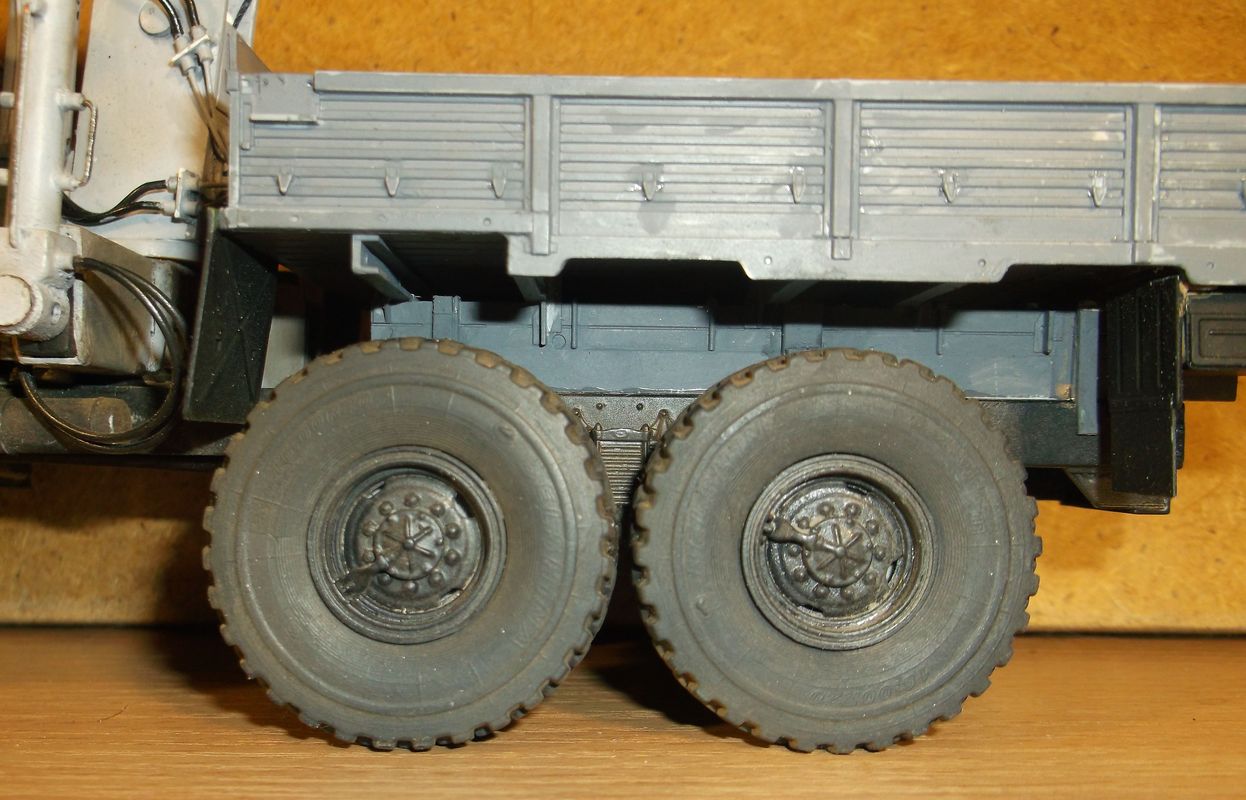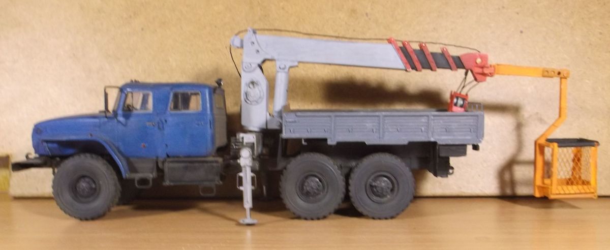 Всем привет! Закончил стройку этого пепелаца и выставляю на ваше обозрение! В дело пошли два УРАЛа, шины от "Бумеранга" или "Панциря" (точно не знаю) и самодельное КМУ производства Александра (Дорик). Классные вещи делает человек! КМУ пришлось подогнать по месту: заузить (чтобы легла в габарит по ширине) и перенести маслобак в другое место. Сильно марать не стремился (не люблю я это дело, да и не умею толком).