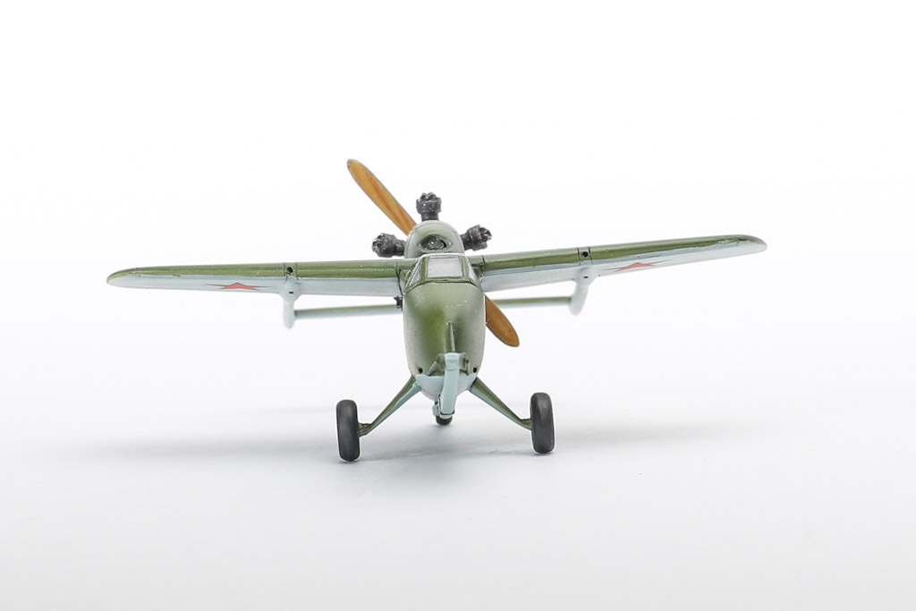 В материалах Новосибирского филиала ЦАГИ сохранился проект оригинальной летающей танкетки-штурмовика " ЛТ " с мотором М-11 Состав вооружения для самолета весом чуть более одной тонны был очень мощным: две пушки ШВАК с боекомплектом по 200 (в перегрузку по 500) снарядов; два ШKACa с боезапасом по 1500 (2000) патронов; четыре (шесть) РС-82 или 400 кг бомб (на двух держателях за счет PC и перегрузки).Самым необычным в этом самолете являлся способ его боевого применения. Огонь по врагу должен был вестись с бреющего бега-полета с высоты всего четыре-пять метров! Устройством, обеспечивавшем бег, являлся специальный выпускавшийся сошник. Конец его соприкасался с землей и таким образом отслеживал все неровности почвы. Считалось, что на такой высоте и при скорости бега-полета 150-180 км/ч самолет может быть малоуязвим для противника. Летающая танкетка могла перепрыгивать и перелетать препятствия, а также, имея расчетный потолок в 1210 м, атаковать наземные цели обычным для самолетов способом. Малые размеры, по мнению конструктора, позволяли САМ-23 стартовать с обычных дорог и, при необходимости, рулить по ним, скрытно выдвигаясь к месту внезапной атаки. Модель очень проста в сборке. Единственная доработка - смоляные цилиндры двигателя. Какой формы были патрубки я не знаю, фантазировать не стал. Тамией самомесом.