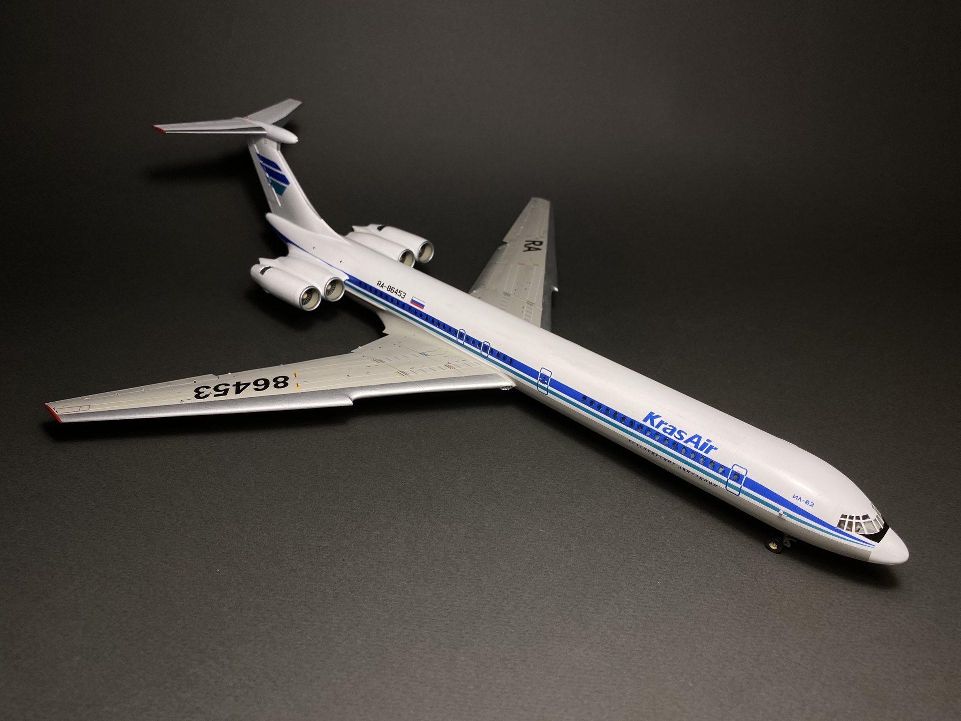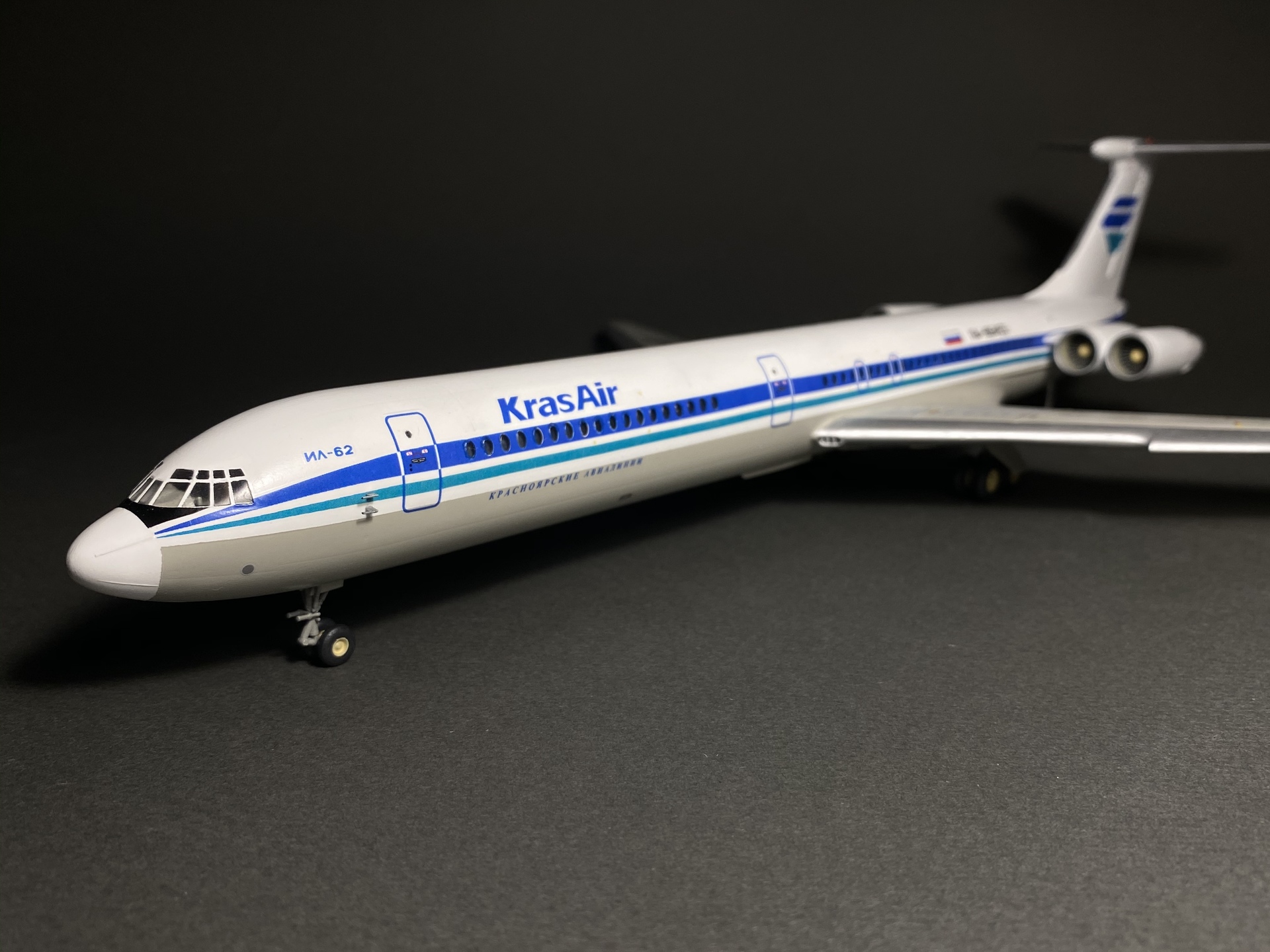 Завершилась стройка модели Ил-62 Красноярской авиакомпании KrasAir с бортовым номером RA-86453 от Звезды. На этом самолете летал мой дед Виктор Васильевич. Модель собирается легко, стыкуемость у серии Ultimate Kit отличная.