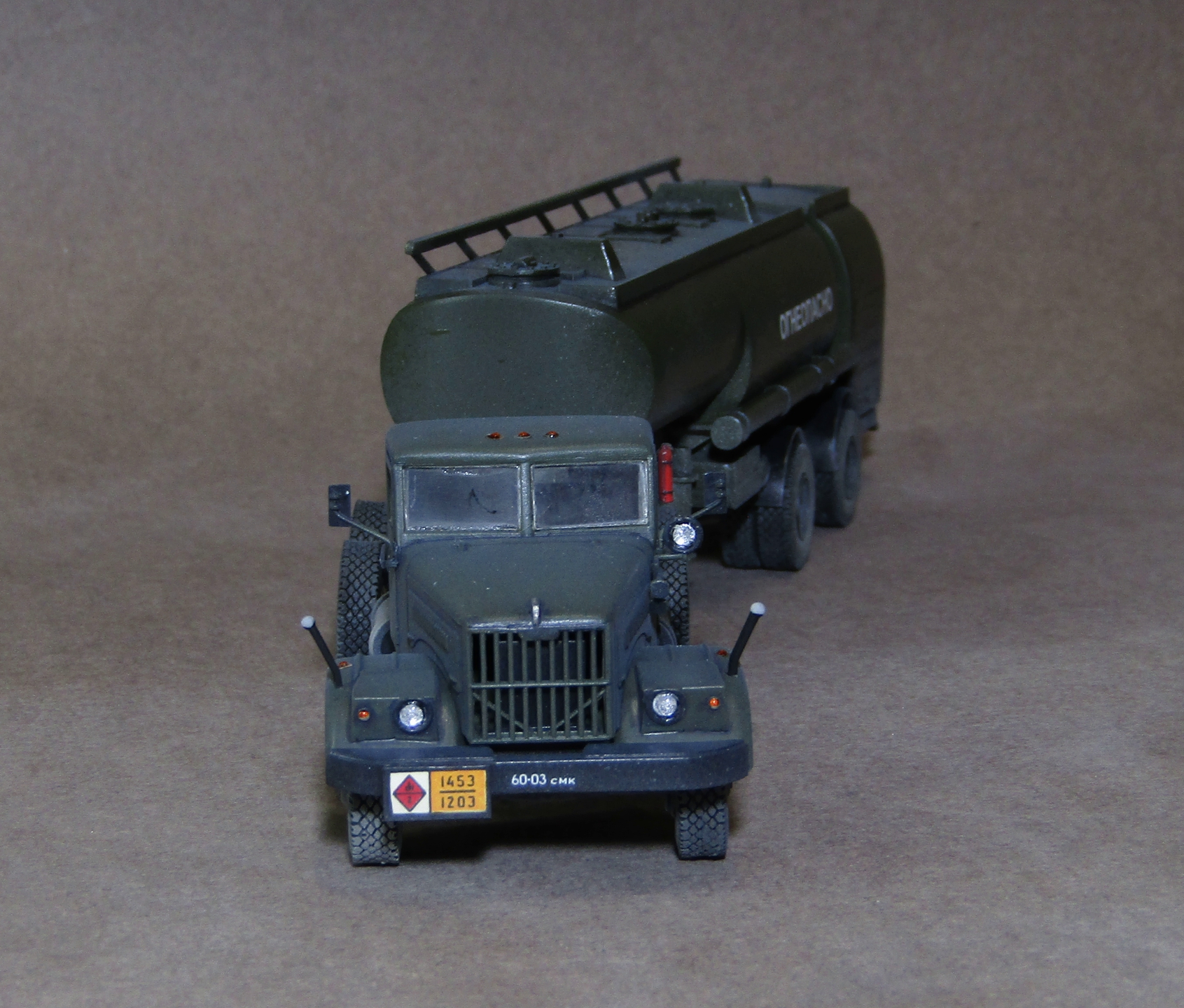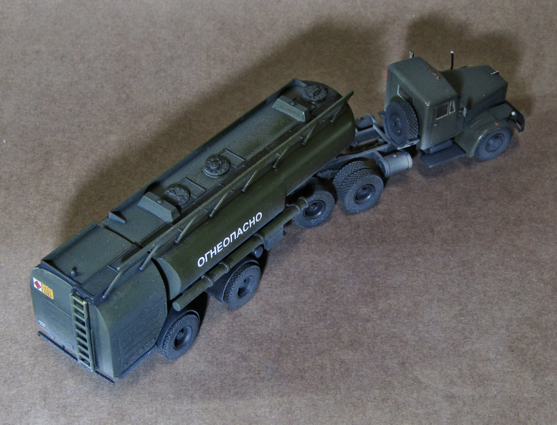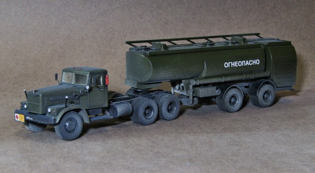 Приветствую коллеги! Представляю ещё один КрАЗ от старого дровяного E-Klass'a. из дополнений использовал 2 набора смоляных колёс от Armory. Декали брал от ICM (Урал 4320). Модель грунтовал серым грунтом Tamiya, основной цвет нанесён спиртовым акрилом от Ганзы (хаки), финишный матовый спиртовой лак от Tamiya (разбавленным KAV models). После нанесения матового лака он почему-то дал белые пятна, поэтому пришлось сверху наносить матовый лак Tamiya из баллончика, который сработал в противоположную сторону и дал глянец на баке. В общем эксперименты с разными лаками придётся продолжить, пока не доволен ни одним производителем.