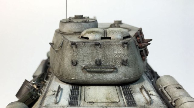 мне понравилось, хотя блеск конечно чуток выбивает внимание. Попробуйте переснять, но не направляя прямой свет, отверните лампы или приглушите. И конечно не хватает следов экипажа, хотя бы над МТО, где он ходил, там краска должна в первую очередь сдираться.