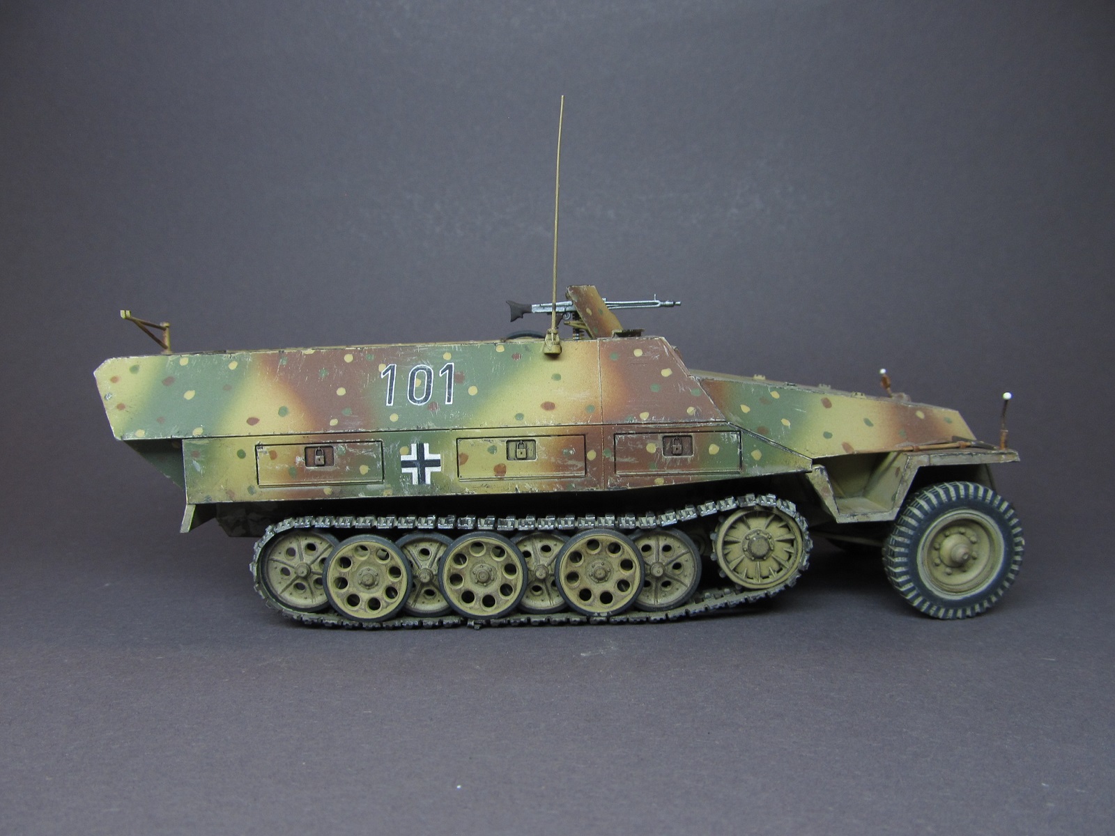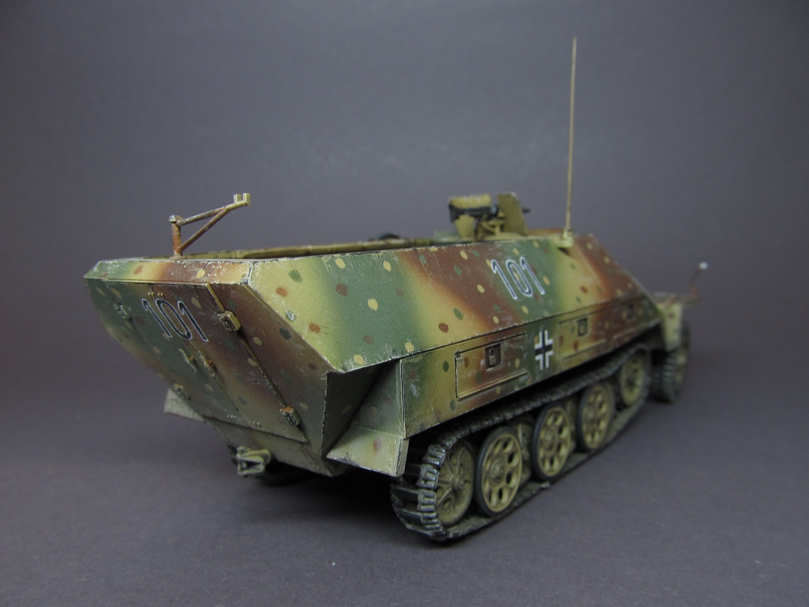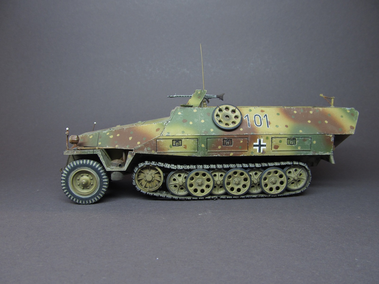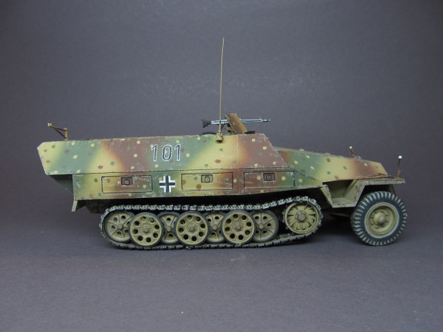 Доброго времени суток, друзья! Представляю вашему вниманию модель немецкого полугусеничного бронетранспортера Sd. Kfz. 251/1 Ausf. D от фирмы "Tamiya". Модель собиралась мною довольно давно, лет семь назад, но отфотографировать и выложить ее на сайт руки дошли только сейчас.