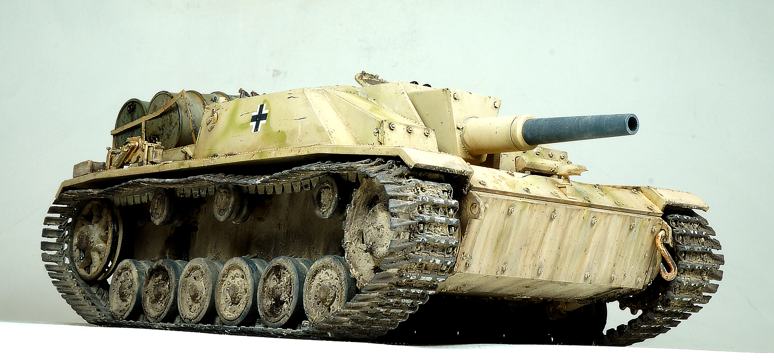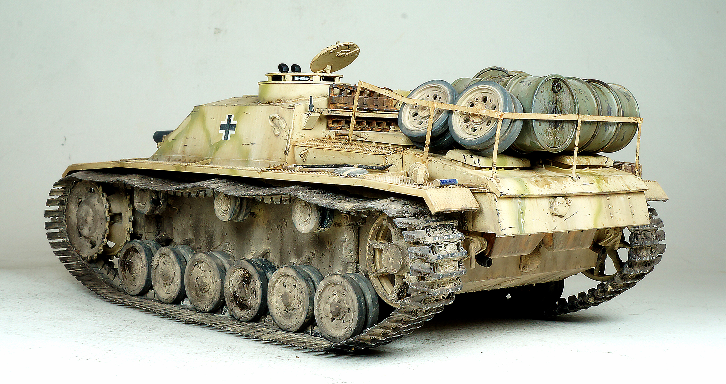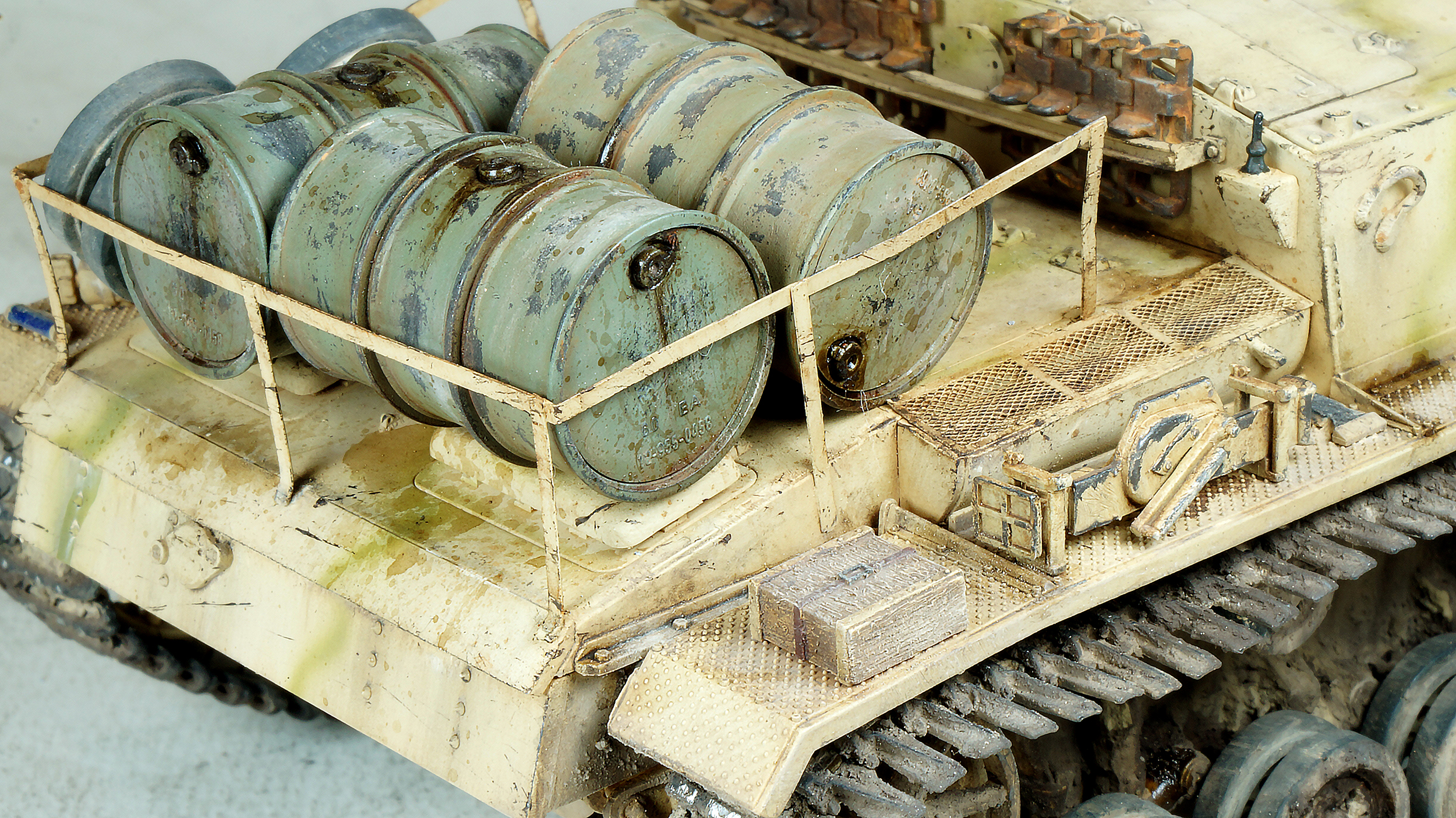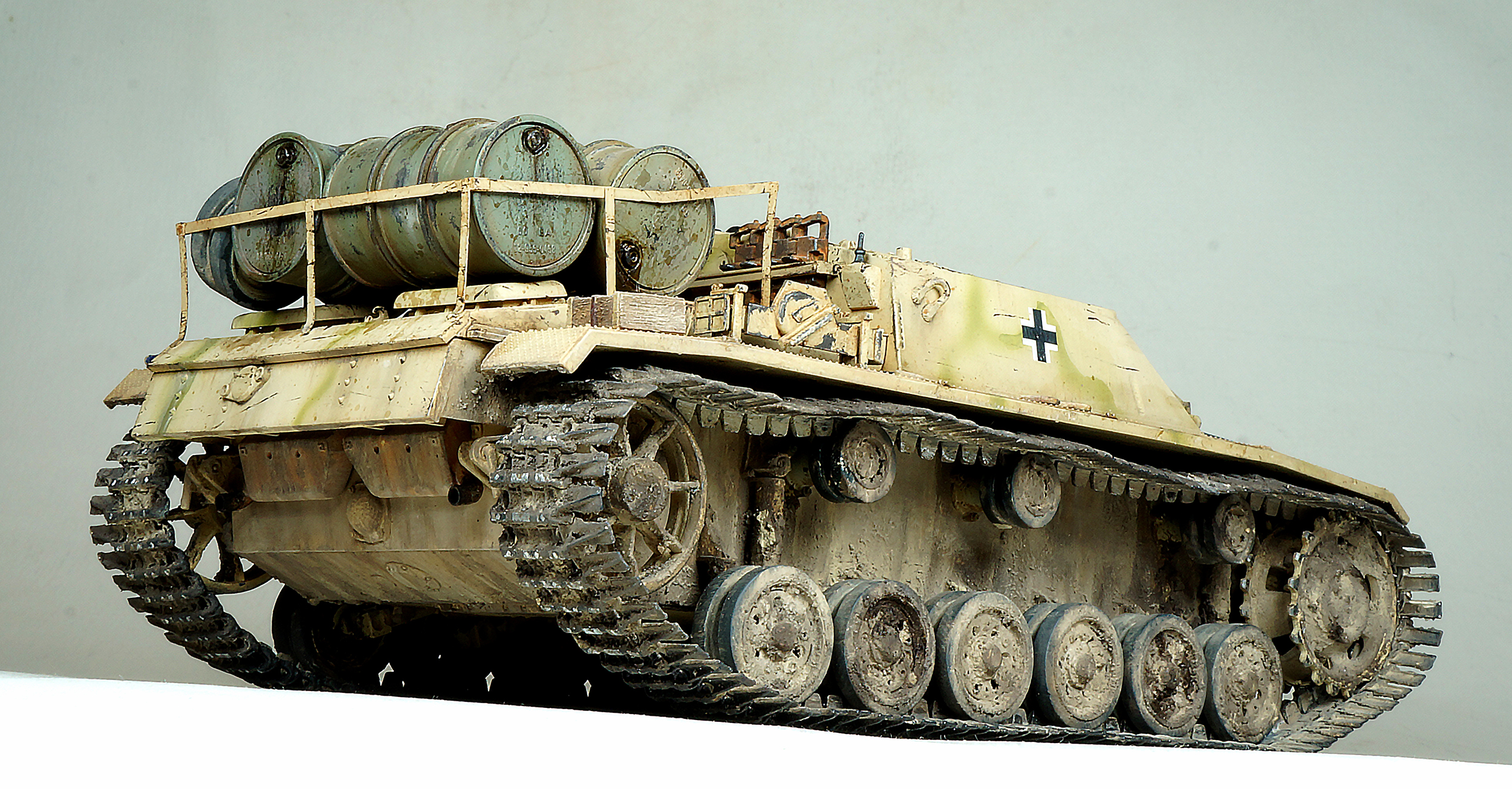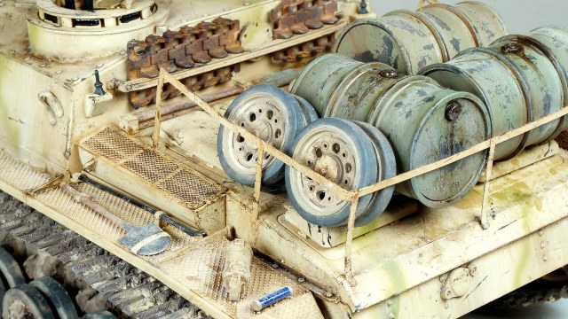 Некоторый диссонанс загрязнения корпуса и ходовой, танк по пояс должен быть в грязи судя по состоянию катков и гусениц, а он только чуток припылен на нлб