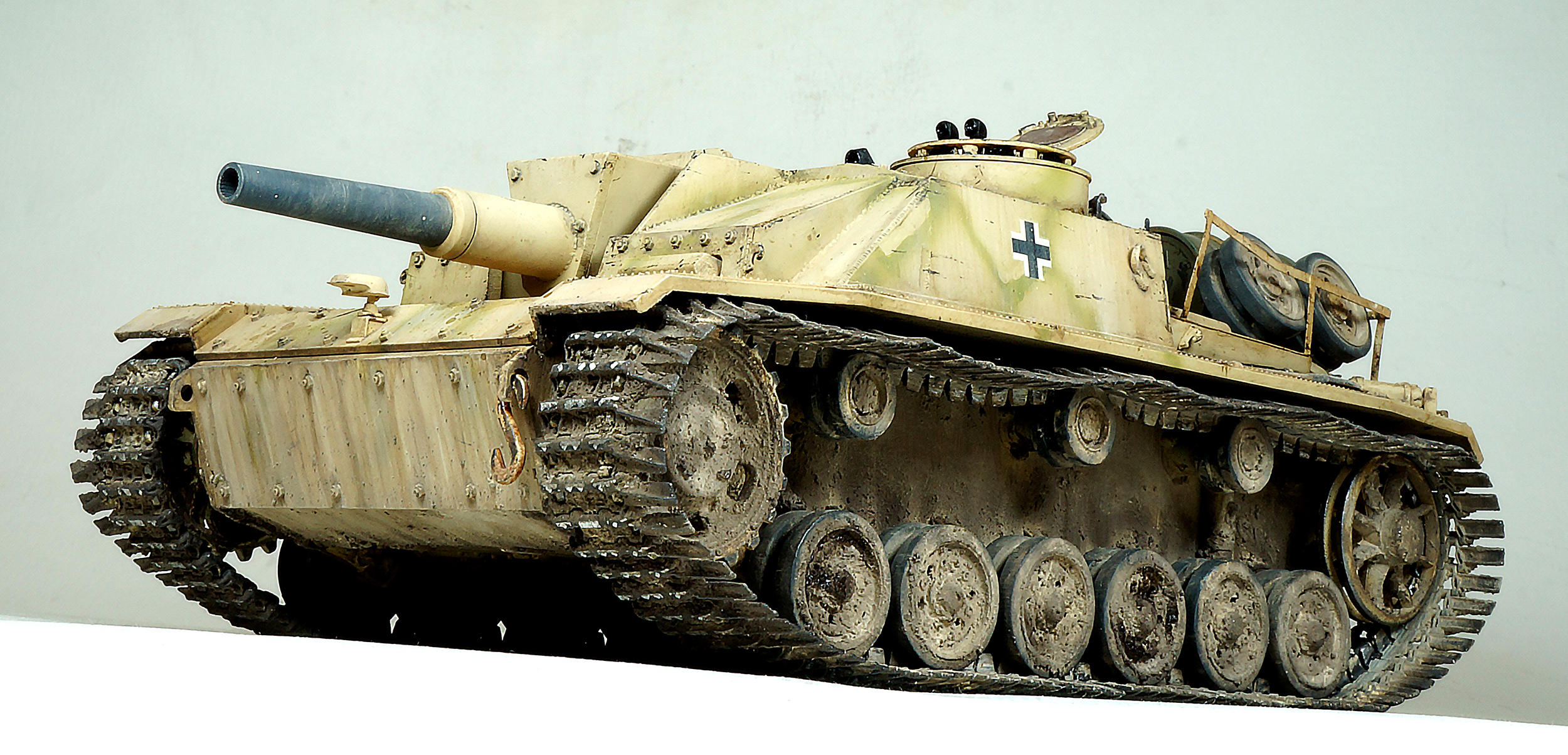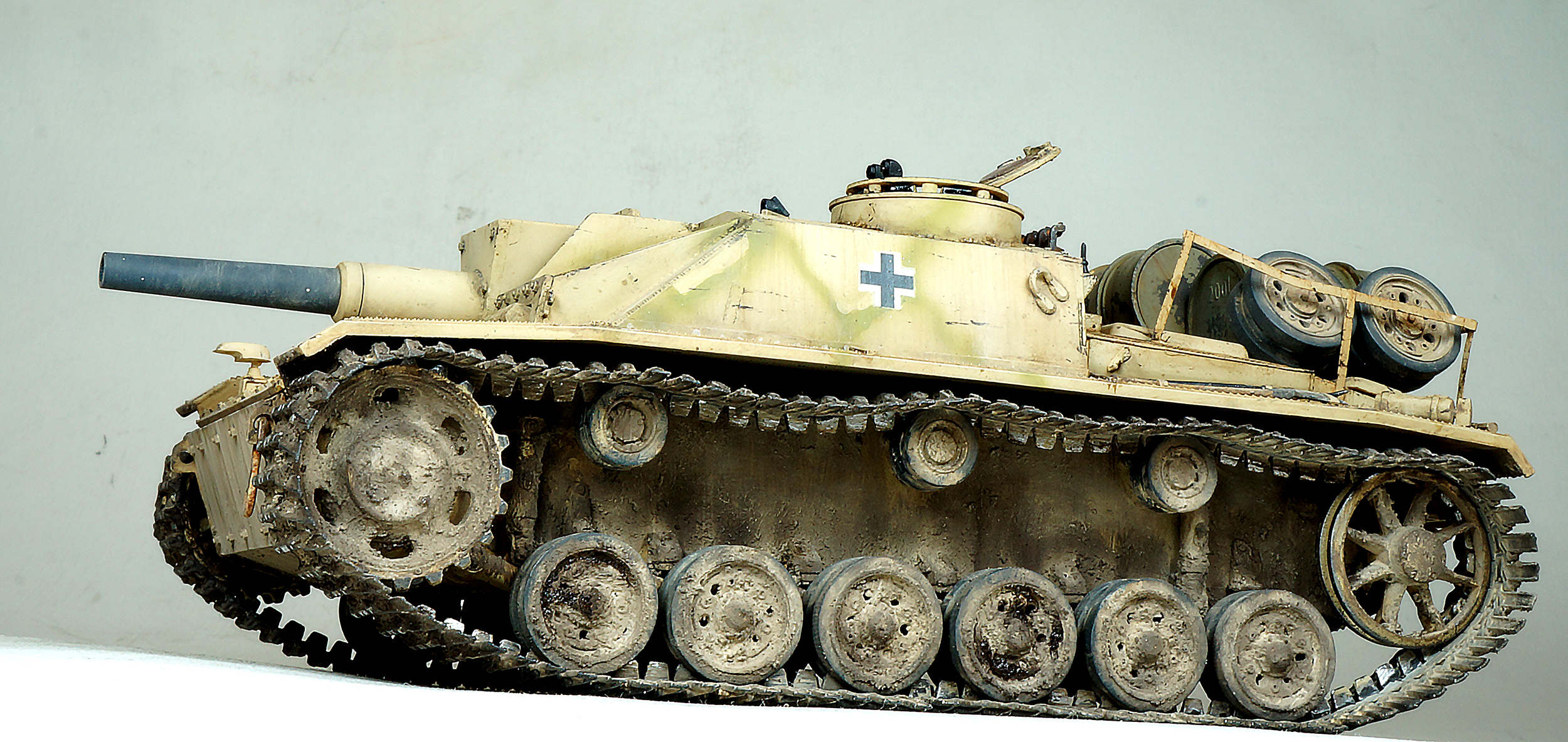 Пара замечаний, траки не верно обуты и на запасных катках стоят шайбы крепления, при таком расположении их не должно быть.