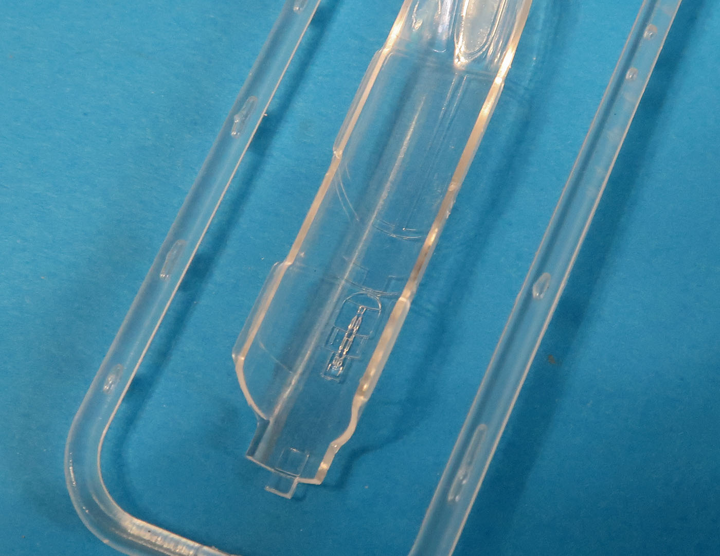 Внутри один пакетик с пачкой литников внутри одним блоком. Выделены тока прозрачные.
