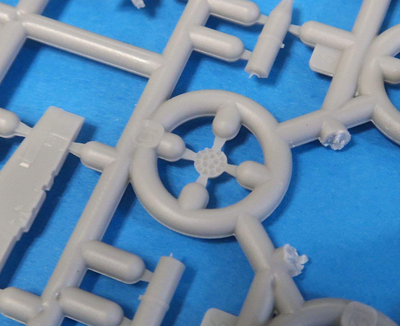 В минусах - облой везде. Он тонкий и некритичный. Он покрывает деталь не целиком (выгрызать надо будет мало что) - скорее "пёрьями" торчит в стороны. Но он практически всюду!! А местами еще и стык от прессформ заметен.