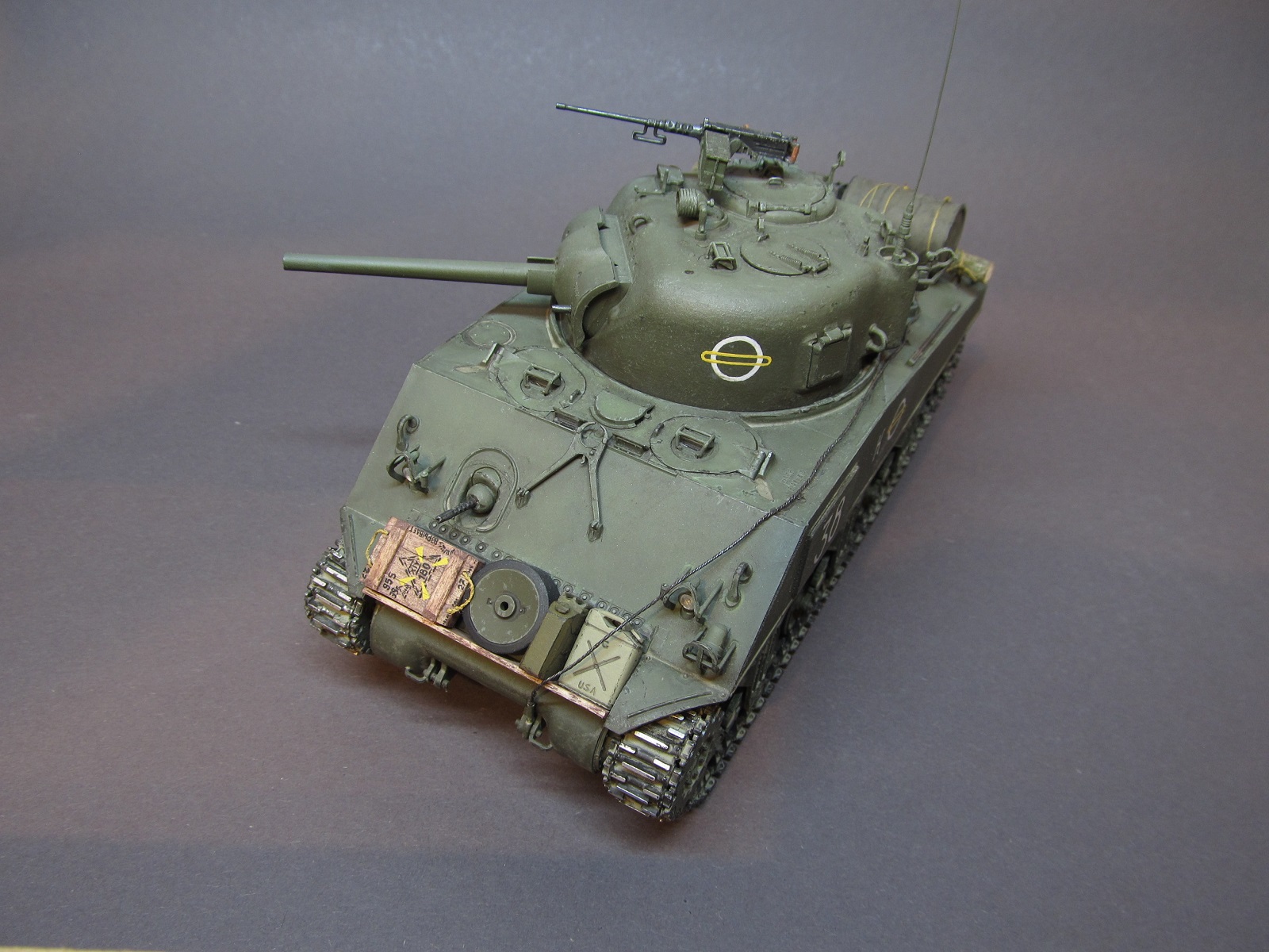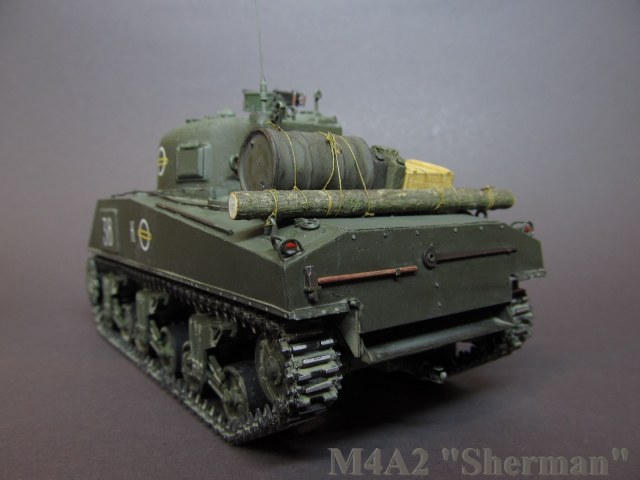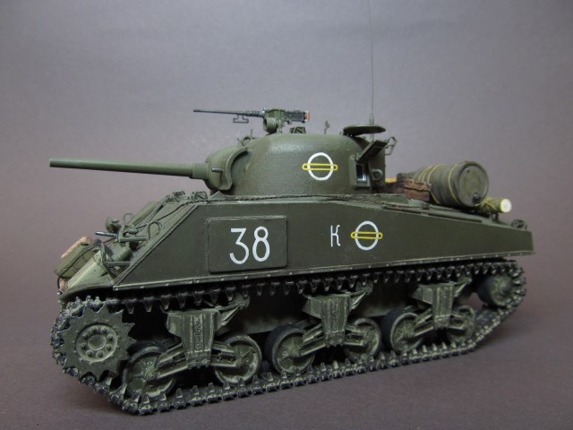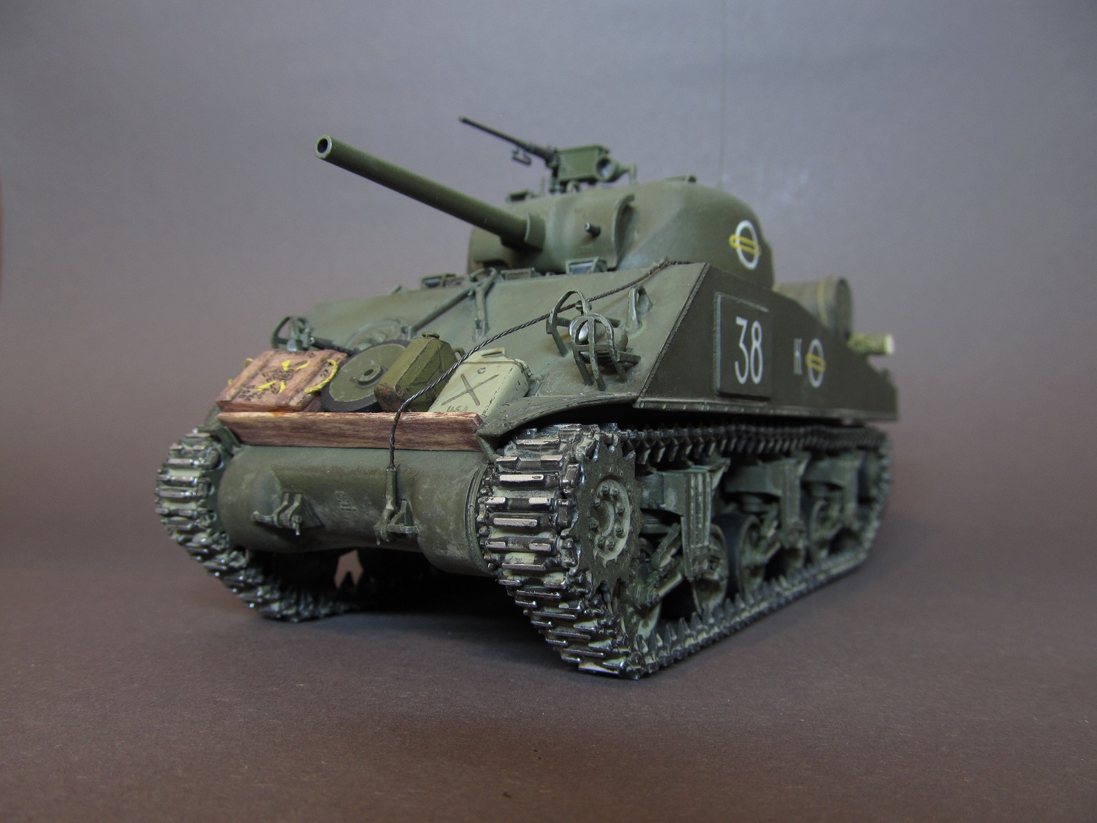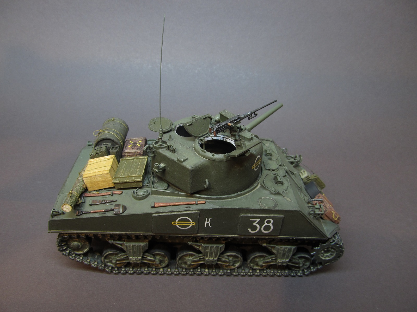 По поводу "обвеса": с ним танк (а тем паче- "Шерман") смотрится куда как интереснее. Опять же, основываясь на архивных фотографиях, можно увидеть, что экипажи данных машин при совершении маршей крепили на броню все необходимое, что могли закрепить и увезти: и доп. боеприпасы, и горючку, и прочий скарб. Пусть никого не смущает наличие на лобовой части танка канистр с топливом и ящика с патронами- для марша это вполне уместно.