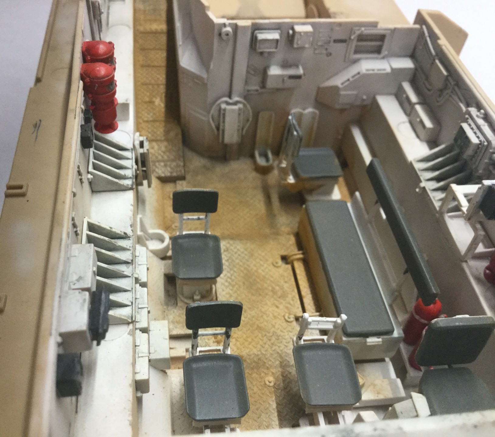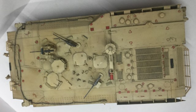 Ну вот опять всё то же самое: неокрашенные стекла задних фонарей, кривые стволы пулеметов, ненатуральная оптика, тросы выглядят веревками. И опять невнятные фотографии с недостаточным освещением, резкостью и контрастом. Учитесь фотографировать.
