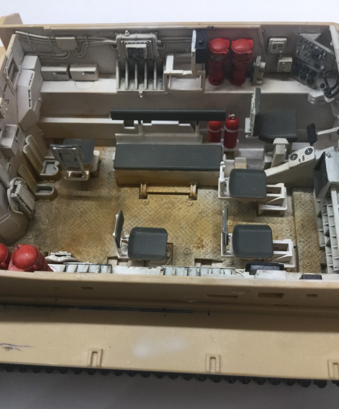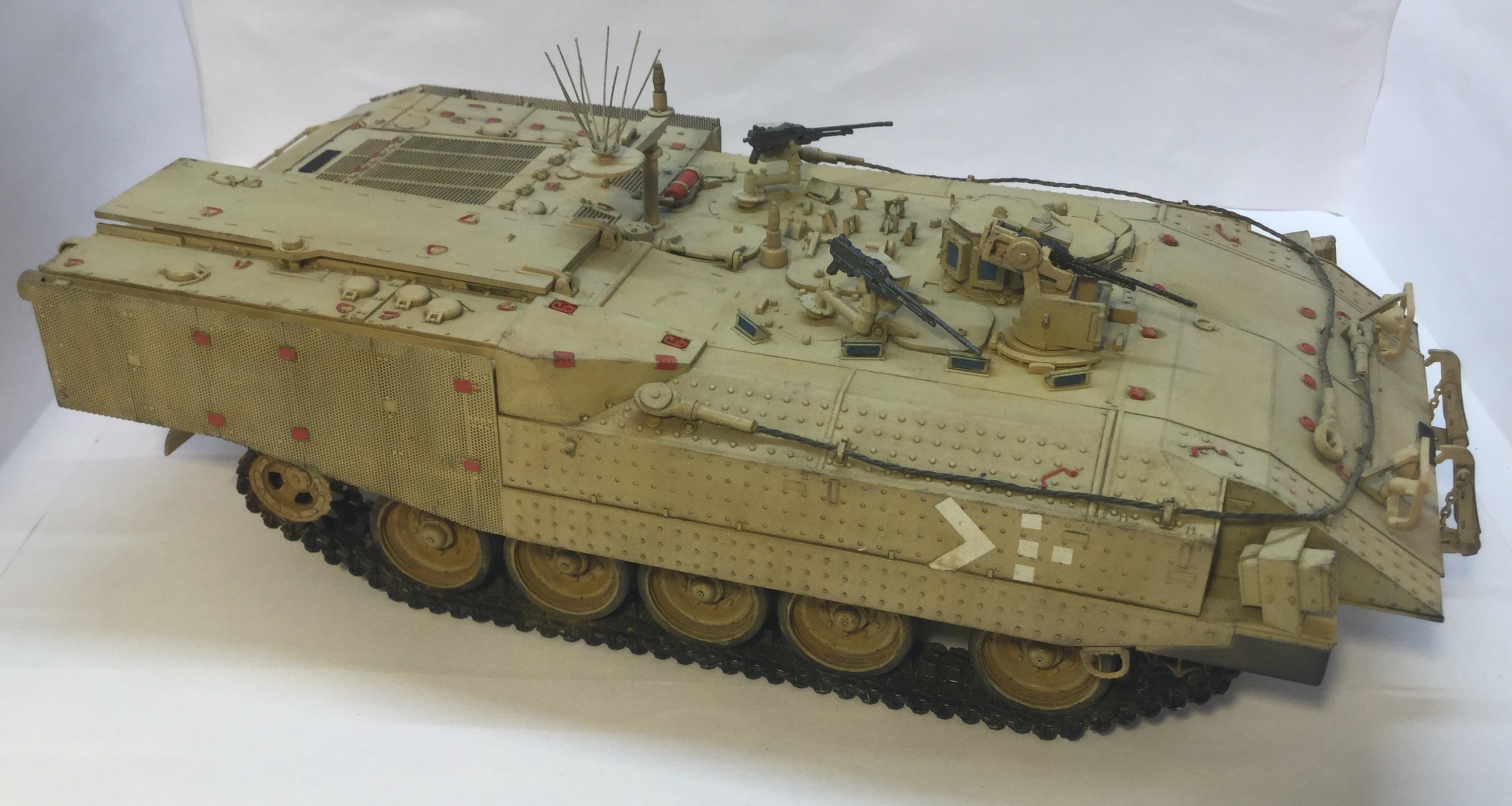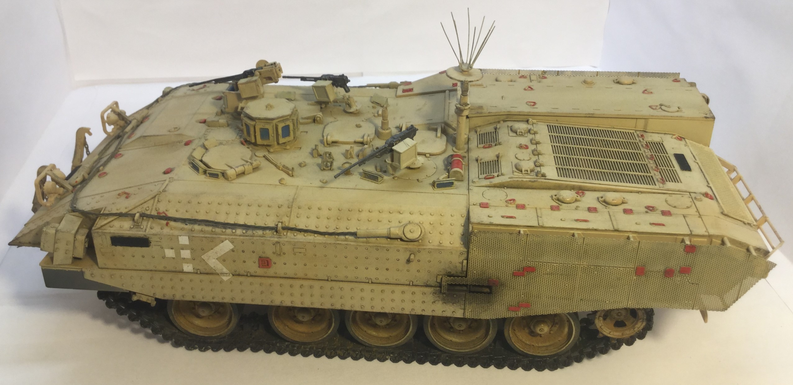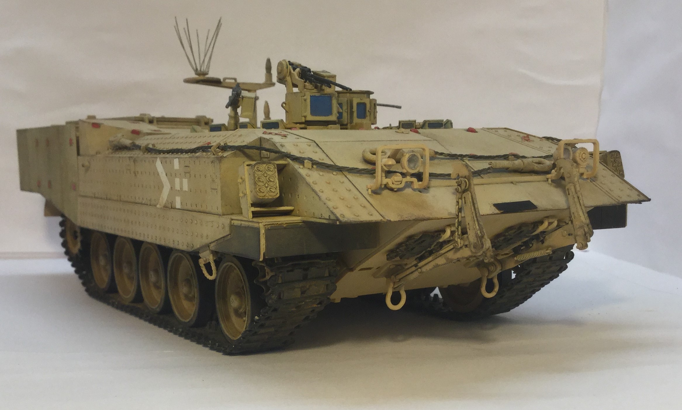 Всех приветствую. Представляю израильский бтр ахзарит. Первая моя модель с полным интерьером. Качество отличное, облоя нет и шпаклевка не нужна (на щель на корме не обращайте внимание, не хотел закрывать интерьер). Также есть травленка и трос металлический. Красил красками арм-принт, лакировал лаками Hobby color. Тонировка и смывка самодельные, пигменты ZIP Wilder. Решил не делать сильно грязной, чтобы не скрыть смывку. Модель по моему получилась красивой, жду Ваших комментариев и критики.