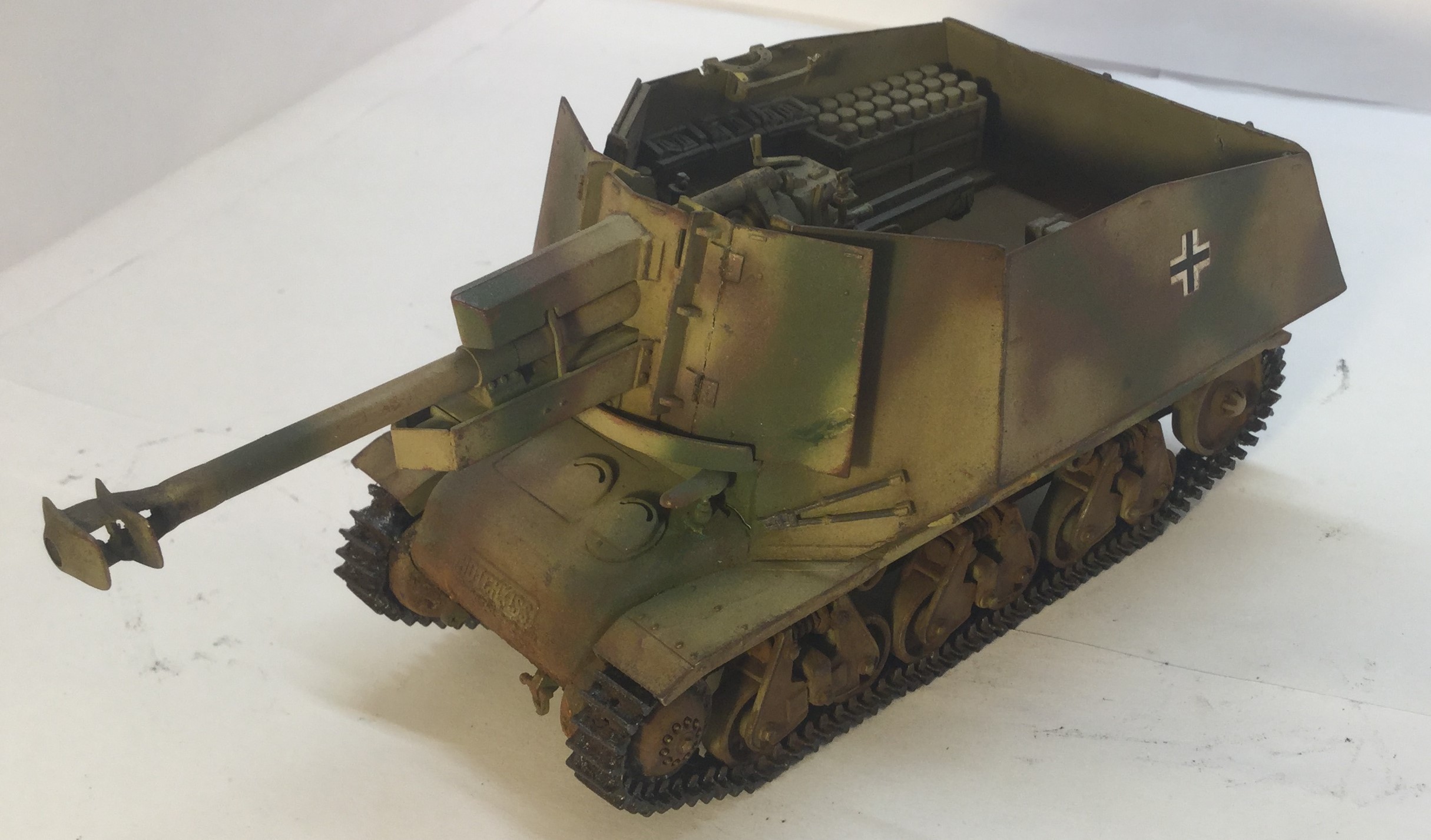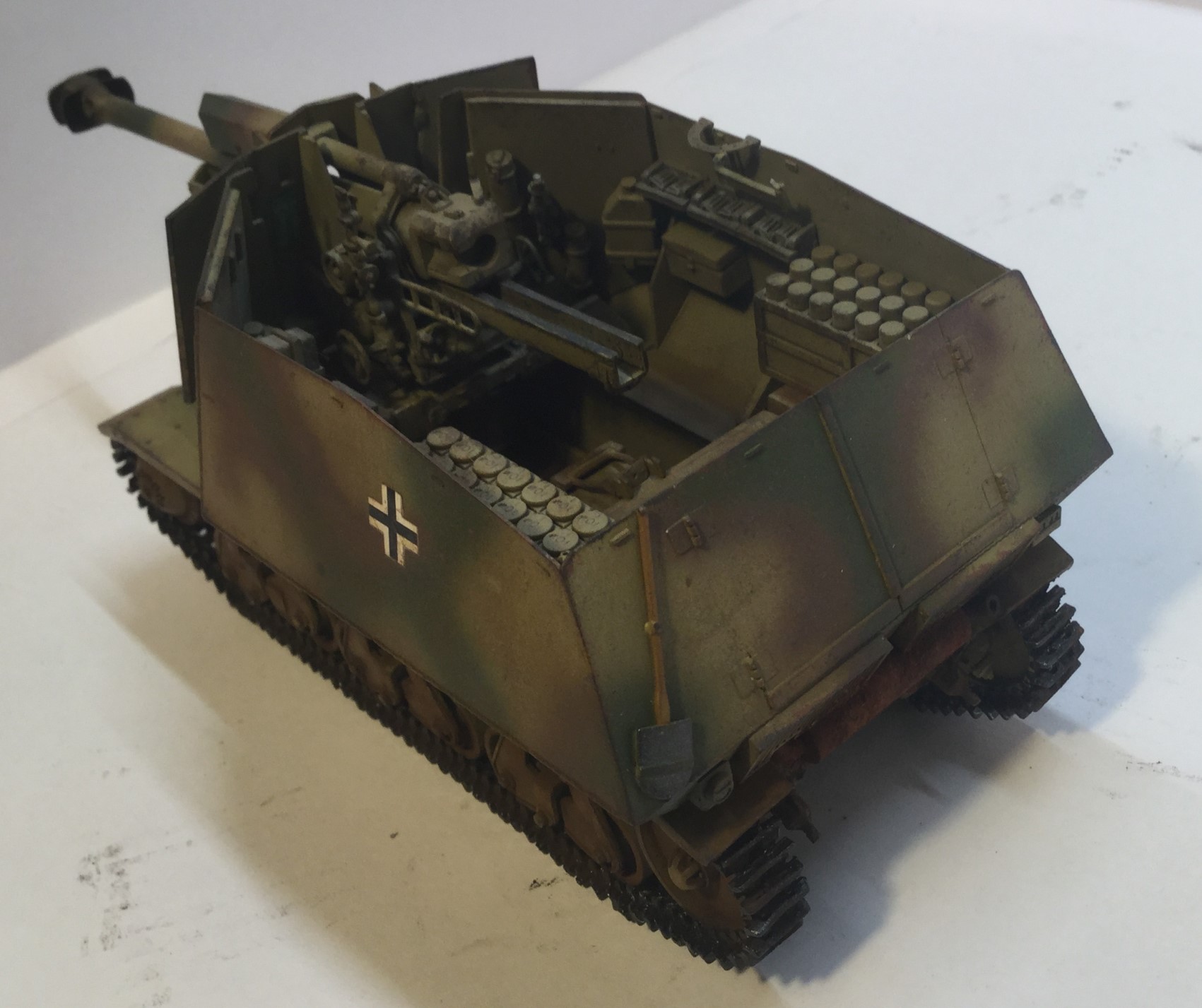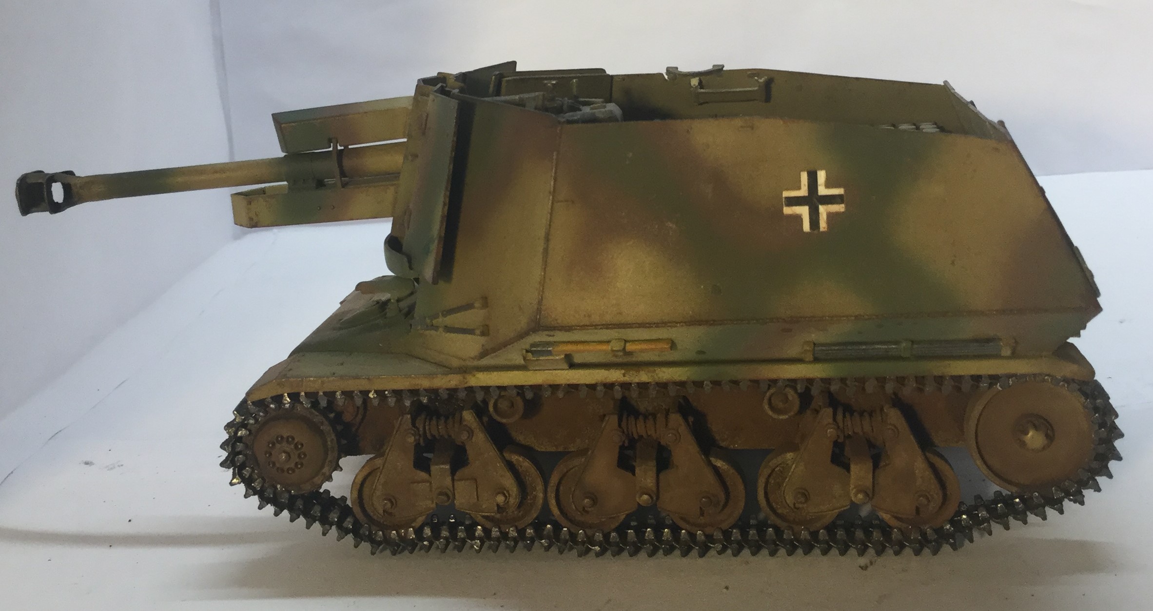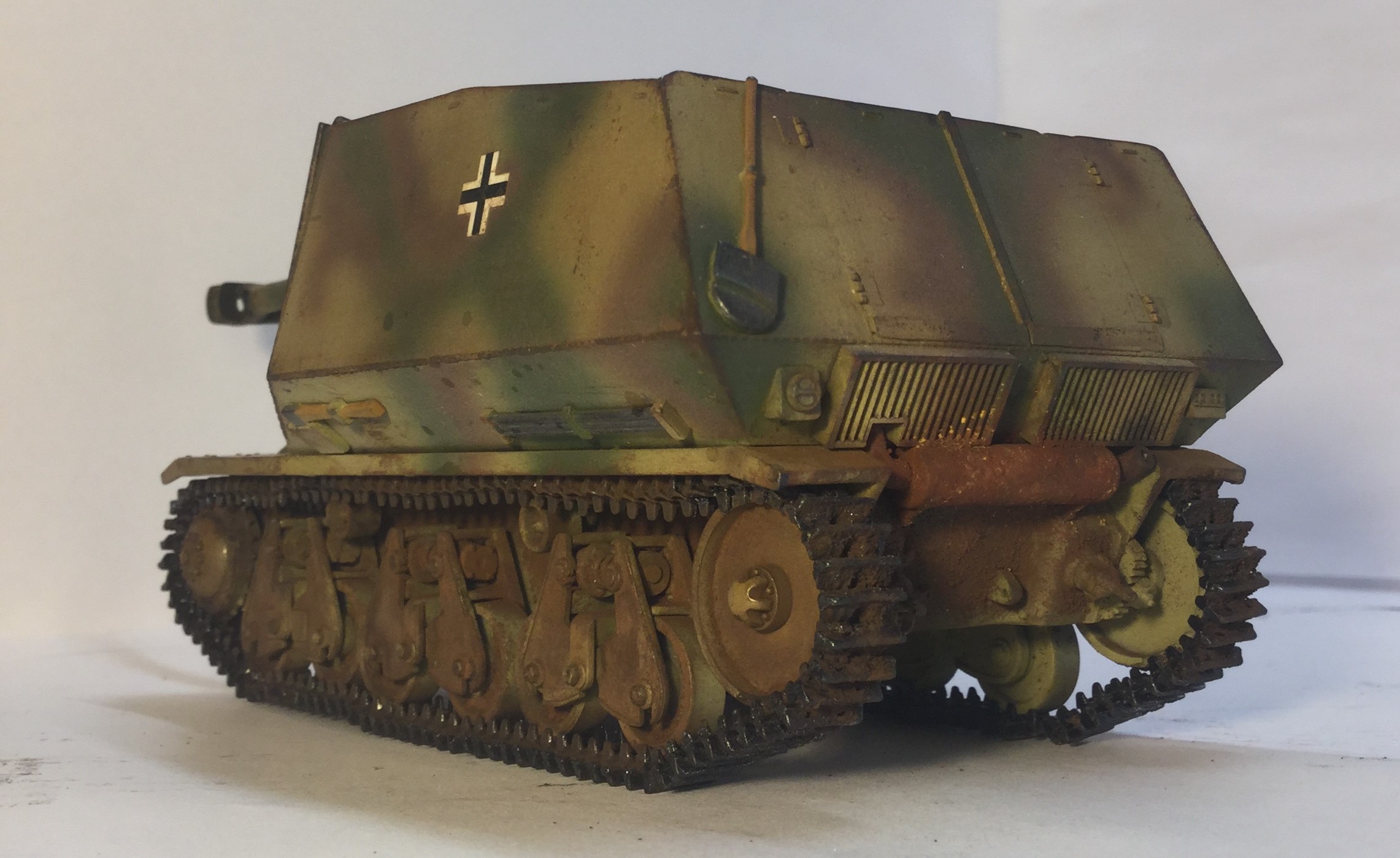 Всех приветствую. Представляю 10.5cm leFH18(Sf) auf Geschutzwagen 39H, или как я называю «пузатика» от Bronco. Качество отличное, облоя почти нет, шпаклевка не нужна. Собирал «изкаропки». Красил красками Tamiya, лаками Hobby color. Тонировка и смывка самодельные, пигменты от ZIP и Wilder. На вид модель смешная из за пузатой рубки. Жду Ваших комментариев и критику.