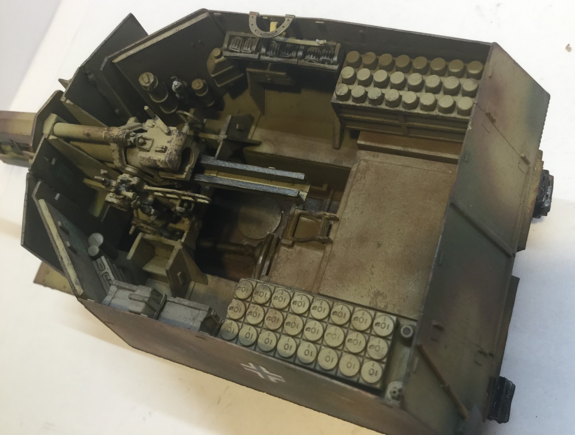 Надо уже потихоньку начинать красить фонари, гильзы и т.д. в положенные цвета, отличные от базы, высверливать выхлопные трубы и учиться фотографировать.