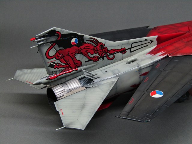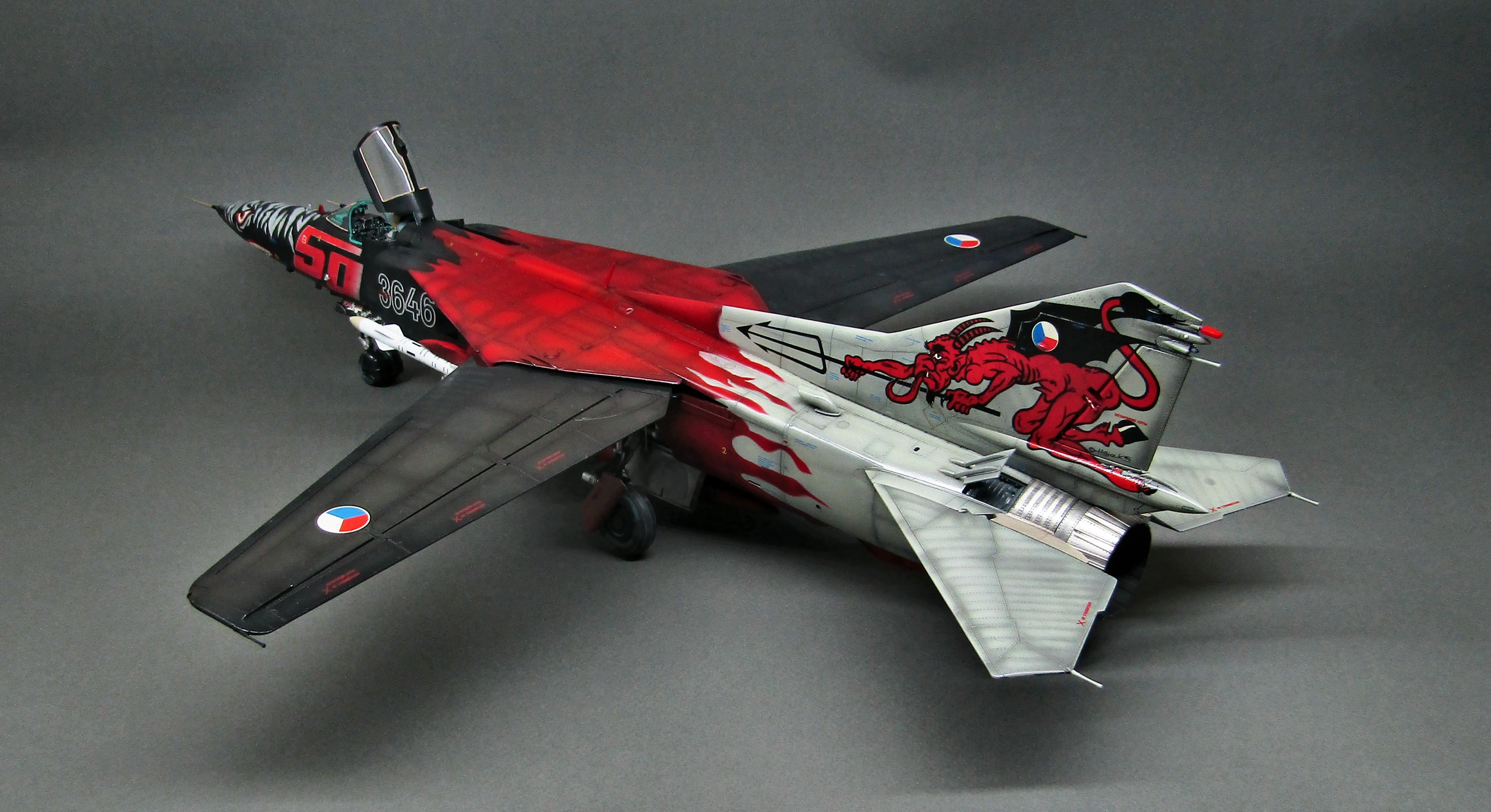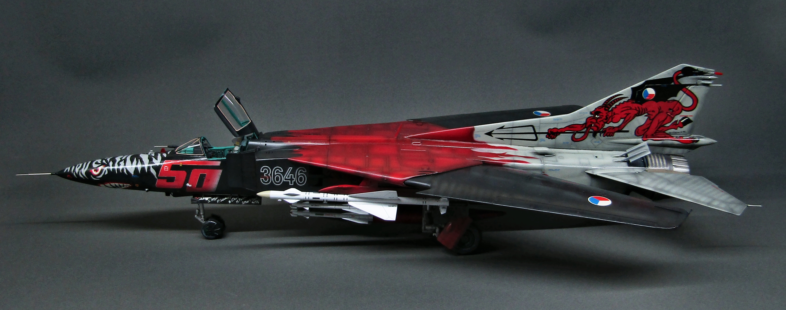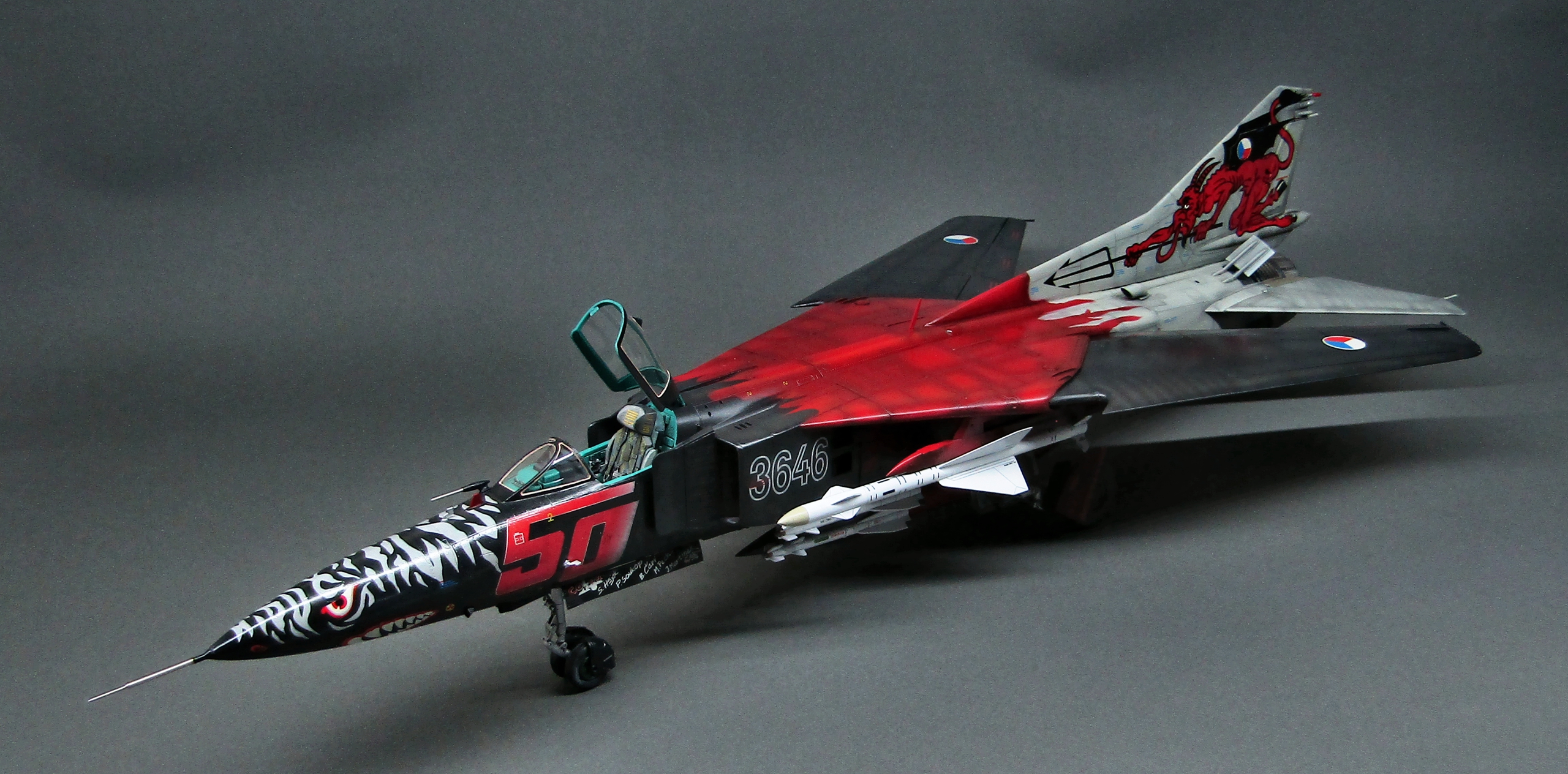 Приветствую коллеги! Представляю один из своих долгостроев. Работу над этим "монстром" закончил давно, но выложить дошли руки только сейчас. Авиация в 32-м масштабе для меня в новинку, набор (trumpeter 03210) в представлении не нуждается и лично мне очень понравился. В качестве прототипа был выбран Чешский борт 1994 года, базировавшийся на авиабазе Č. Budějovic в честь празднования 50-летия со дня создания первого самостоятельного чехословацкого истребительного полка, сформированного в годы Второй мировой войны в СССР. Для воплощения задуманного с Украины были заказаны декали от Authentic decals (32-01). В процессе стройки был к сожалению установлен факт того, что модификация прототипа МиГ-23 МФ, а набор