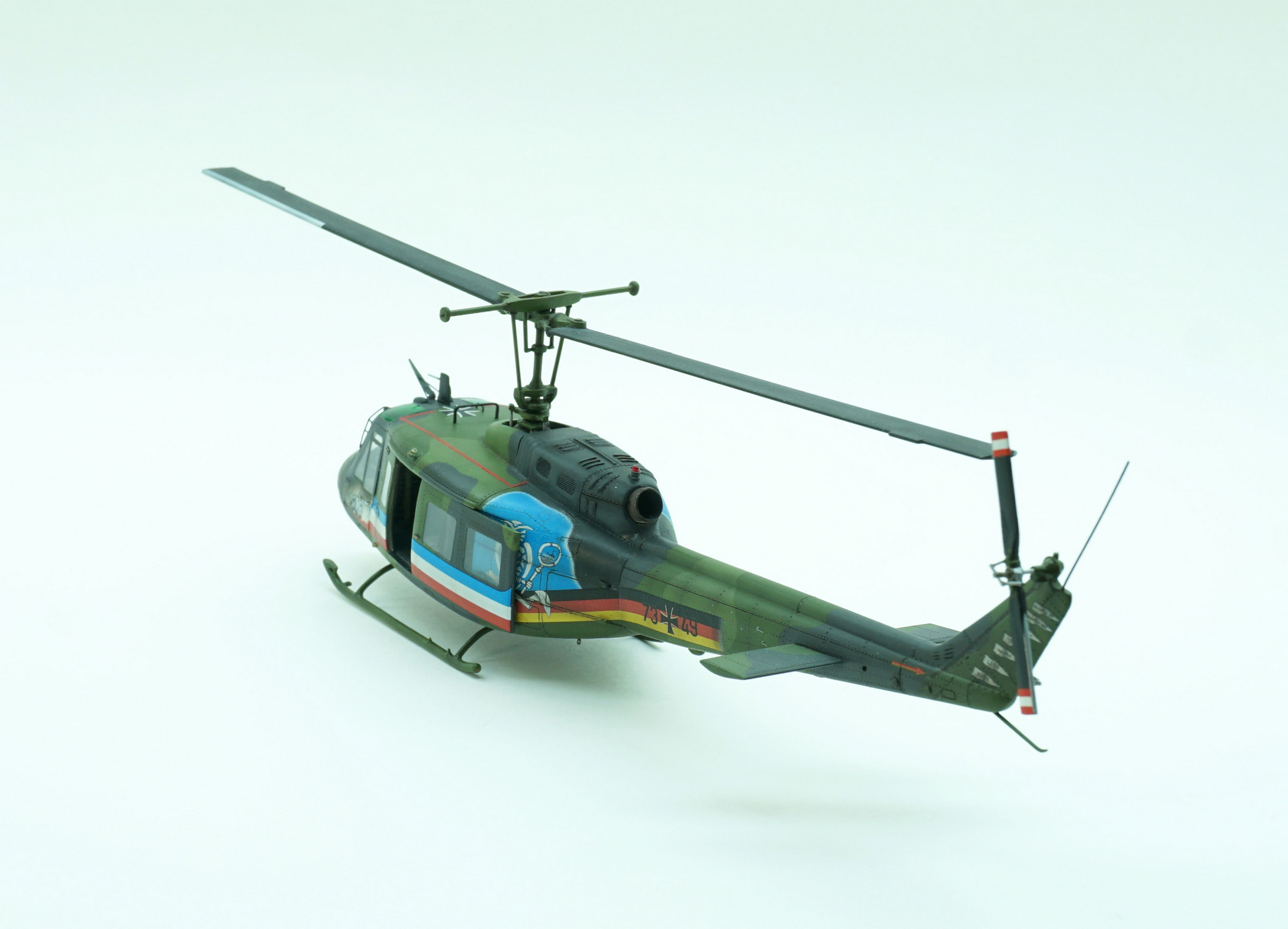 Неспешно собираю коллекцию ирокезов. В этом году закончил ещё два «длинных». Выкладываю результат. Модель вертолёта UH-1D - лицензионная немецкая копия американского длинного ирокеза. В западной германии построили более 300 вертолётов этого типа, и хотя это было очень давно (например, эти машины даже засветились в контртеррористической операции на Олимпийских играх в Мюнхене в 1972 г.), тем не менее - эти машины используются и по сей день. Так как абсолютное большинство ирокезов и их армейских модификаций имеют однотонную оливковую окраску, (что не очень интересно, на мой взгляд), то для моделирования я выбрал красочный вариант в специальной демонстрационной окраске в которой он летал в 2004 году (German Army HFR 6 «Special Colors», May 2004).