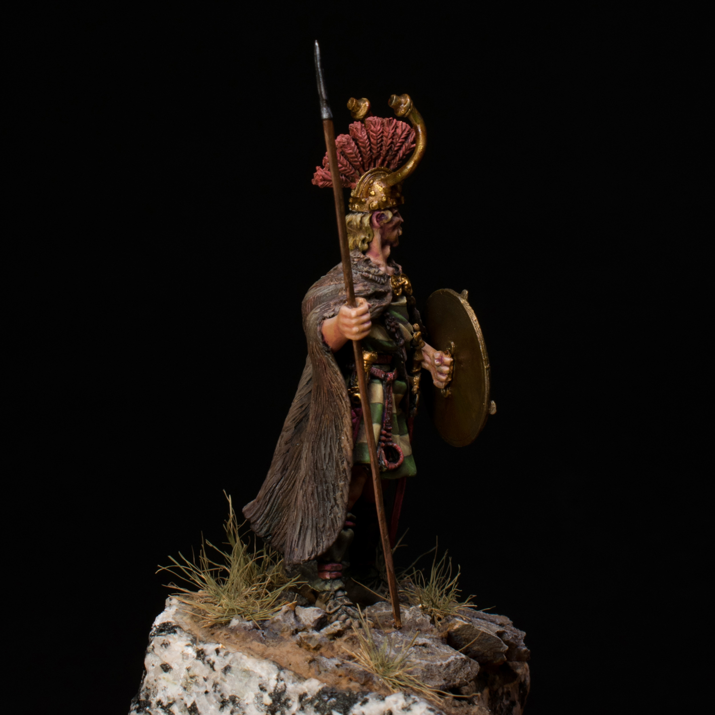 Роспись акрилом и маслом. В качестве подставки использован не самый распространённый в наших кругах материал - приличный кусок серого облицовочного гранита.В этом есть свои плюсы: как-то в очередной "схватке" "металлистов" и "смолянистов" прозвучало, что когда фигурка тяжелее основания, то за неё постоянно трясёшься при покраске, чтобы ненароком не опрокинулась, потому что чинить металл посложнее, чем смолу. Ну в данном случае полный порядок - основание в разы тяжелее самой миньки.