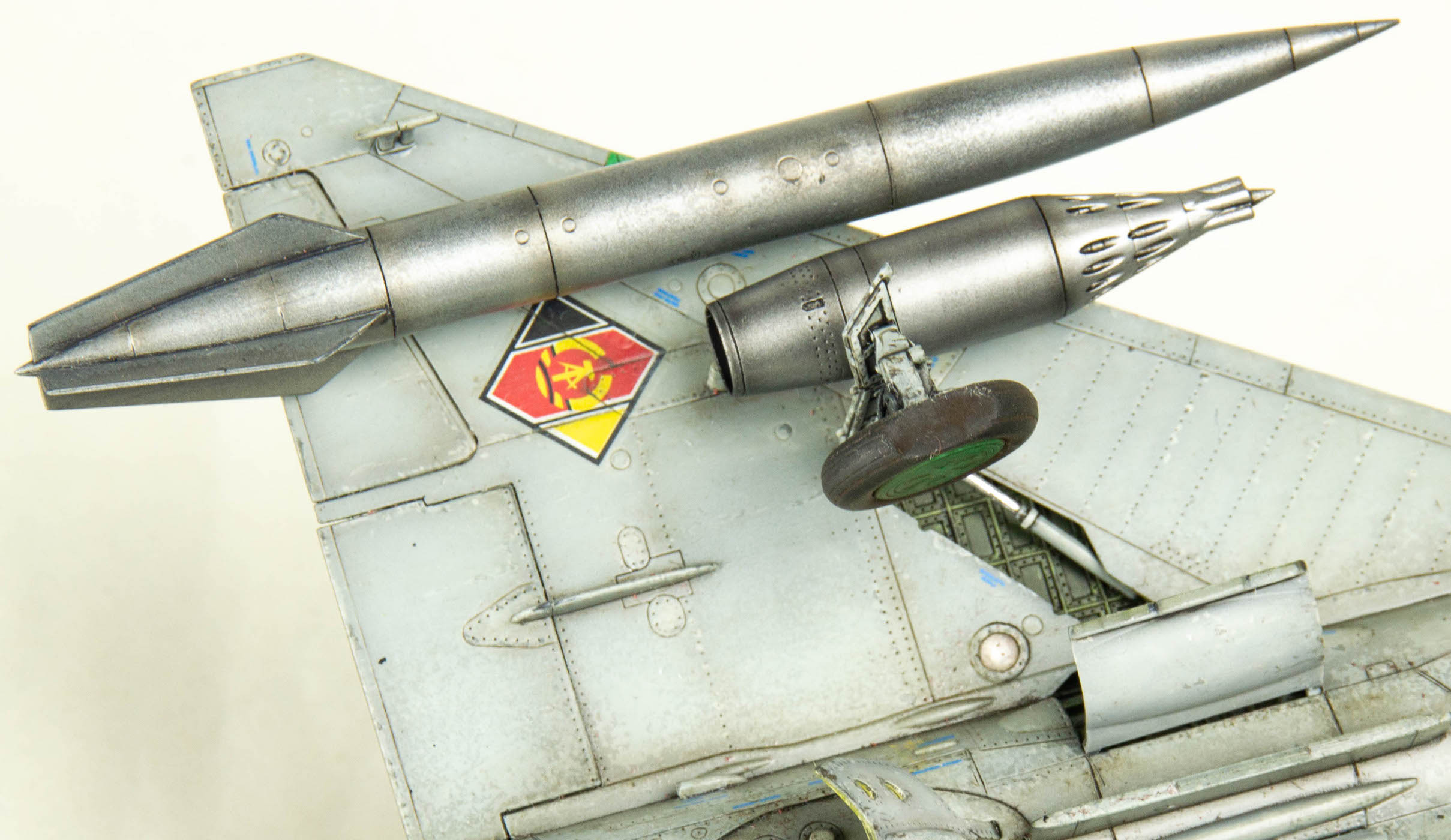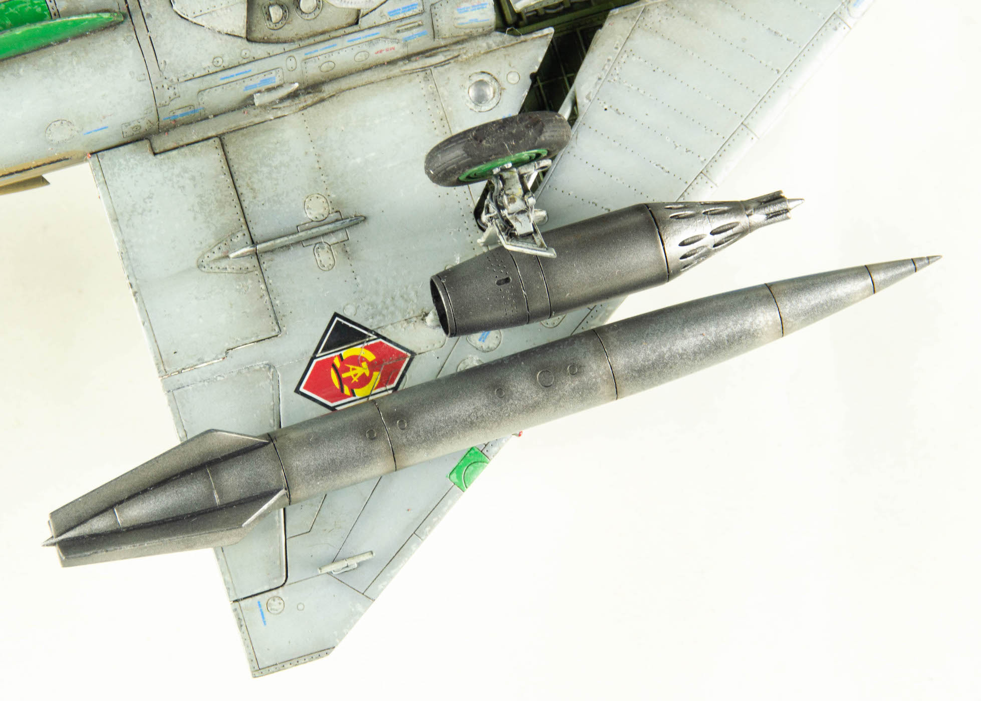 Красивая модель! Не совсем понятна подвеска, куда он так в ГДР собрался с баками и с нурсами, логичнее было бы по отдельности.