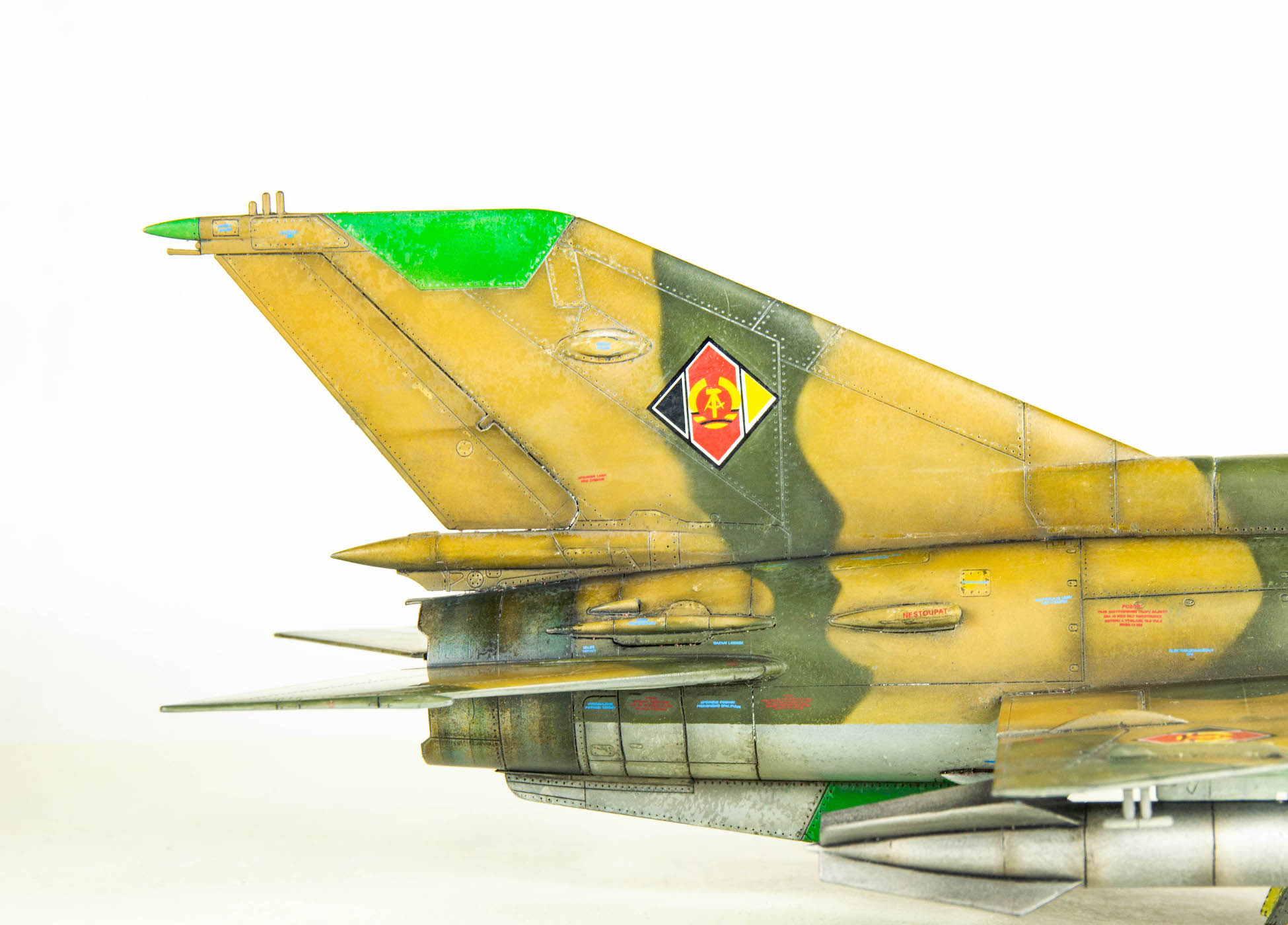 Понравилась работа, но цвета и расположение пятен камуфляжа для МиГ-21МФ военной авиации ГДР не совсем типичные.