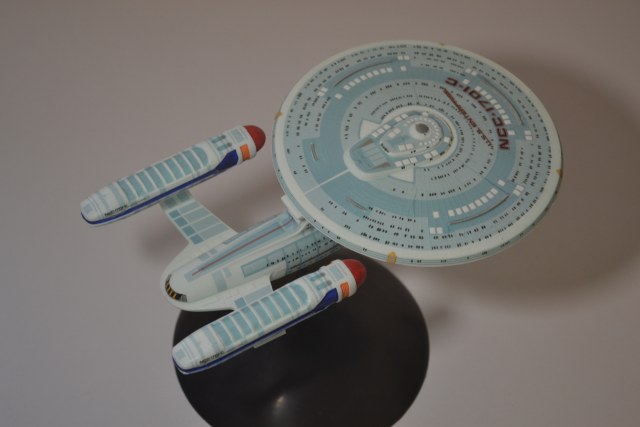 Результатом хочу поделиться скорее ради того, чтобы люди подумали дважды прежде чем брать это. Впрочем, на полку в дальний угол это всё ровно поставить можно, для коллекции. Может быть остальные получатся лучше (ну кроме энтерпрайза из TOS, для которого в коробку забыли положить декали).