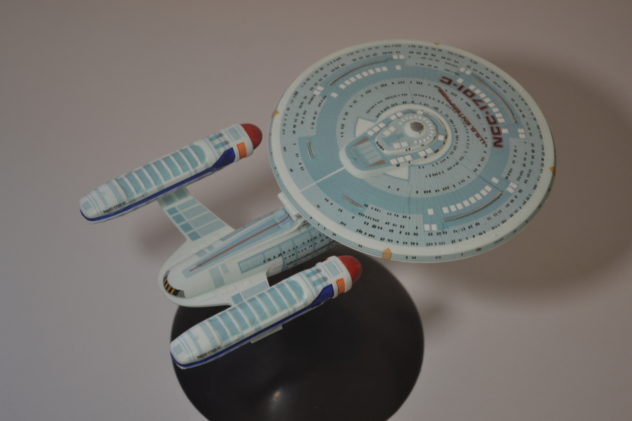 Увидел я как-то набор из 7 Enterprise'ов на ebay и подумал, почему бы и не купить. Особых надежд на набор не питал, но всё же не ожидал такого провала. Первым собрал ncc-1701-c (Ambassador-class), т.к. его было не жалко запороть, набив шишки перед сборкой остального. Теперь я сомневаюсь что из других наборов получится что-то дельное, время покажет.
