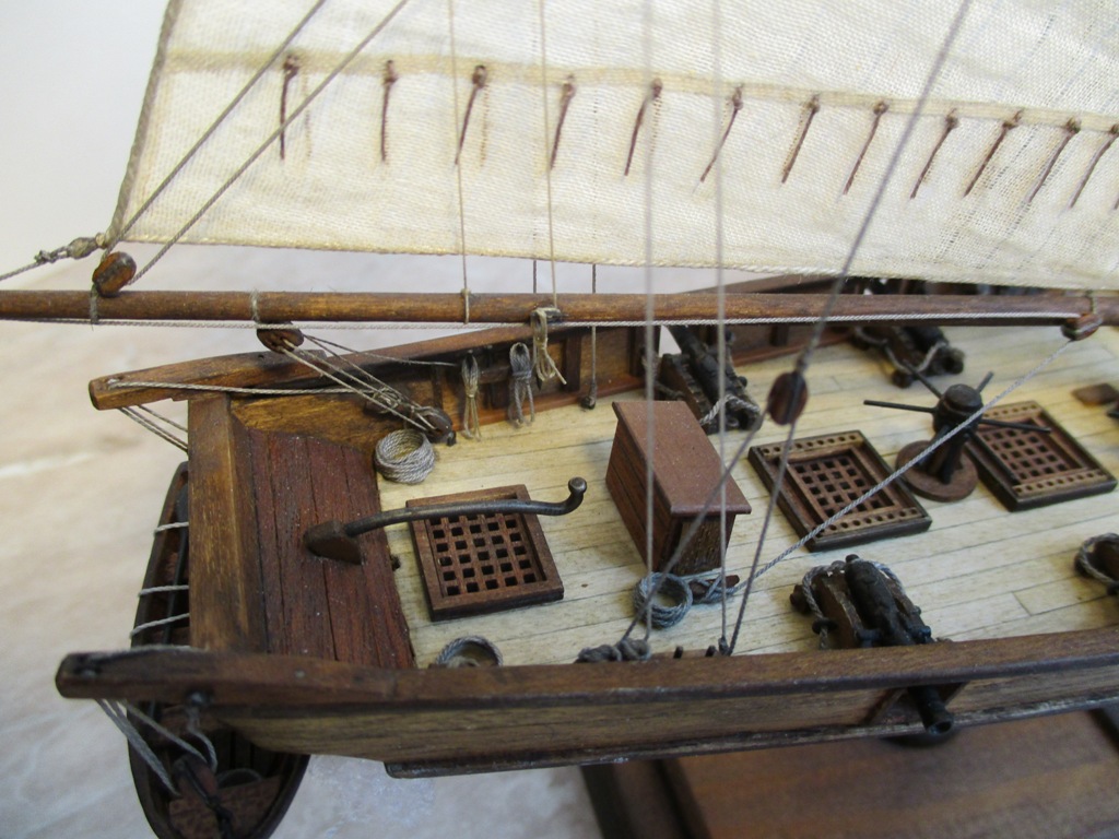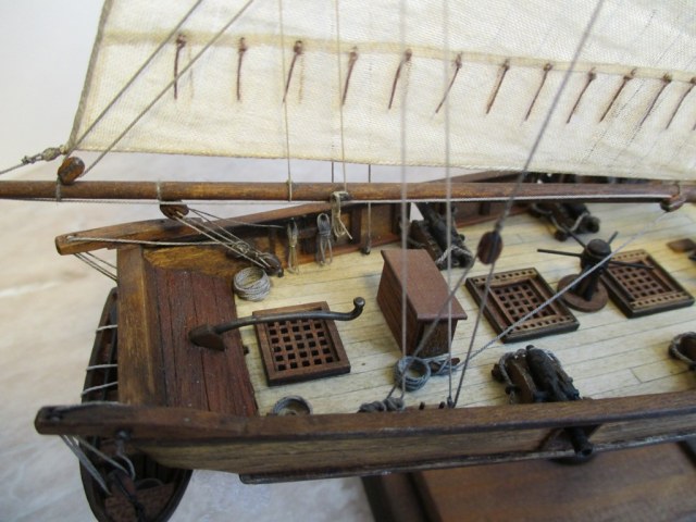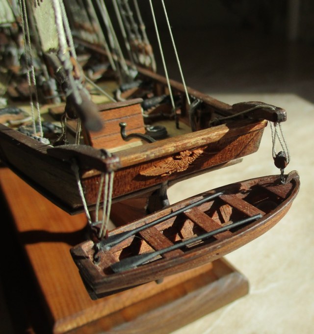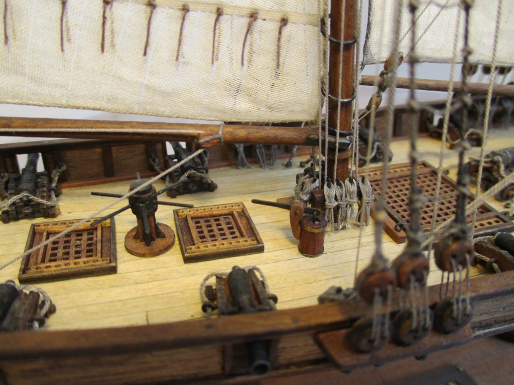 Приветствую Михаил и Коллеги! Мне модель вполне понравилась, про блоки и юферсы уже сказали.Но вот лично мне бросилось в глаза ни чем не закрепленные весла в шлюпке. А так вполне себе Галерея.