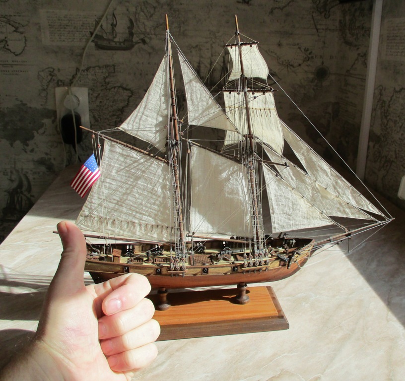 Кирилл привет! При макросъемке, при таком масштабе, ни одна деталь не будет нормально смотреться! Ткань батист самый тонкий что есть. Считаю, паруса, это самая сложная деталь для модели, по масштабу сделать паруса практически не возможно, потому, многие и отказываются от них. Паруса, это окончательный вид модели парусника, ну об этом очень много описано (на всех сайтах).