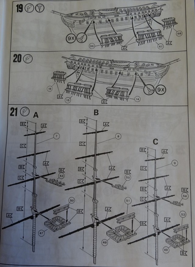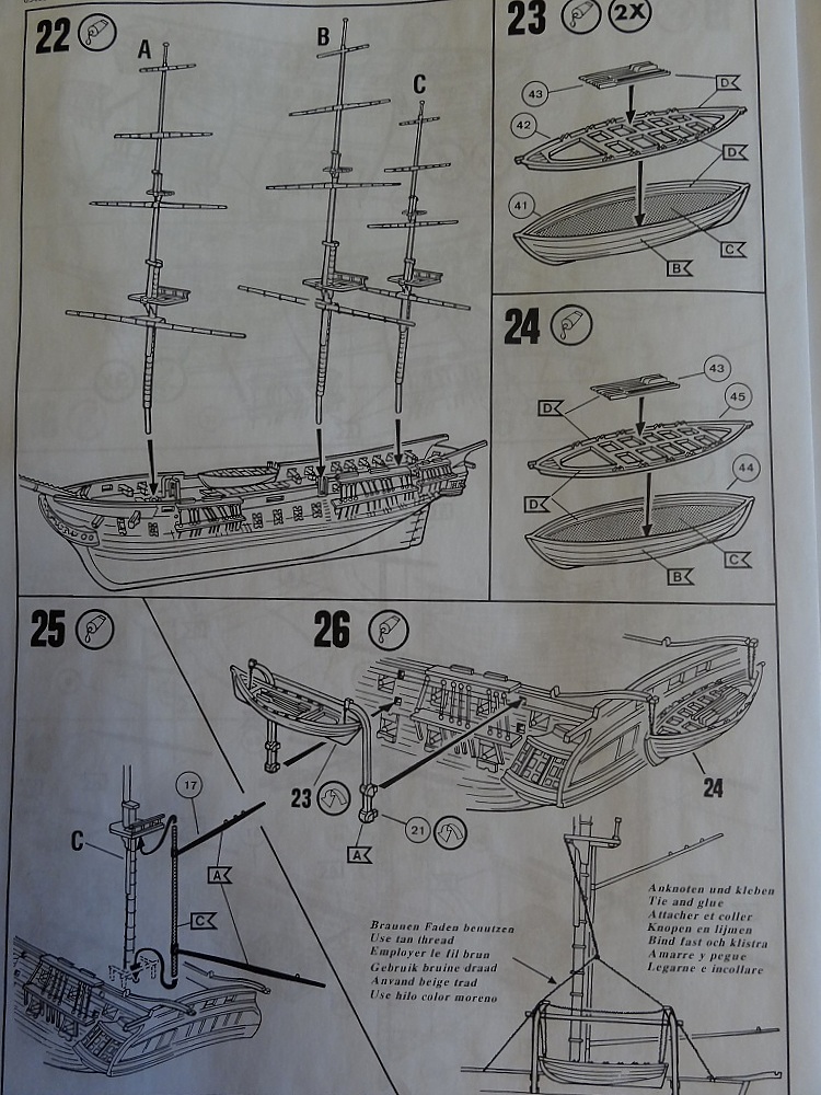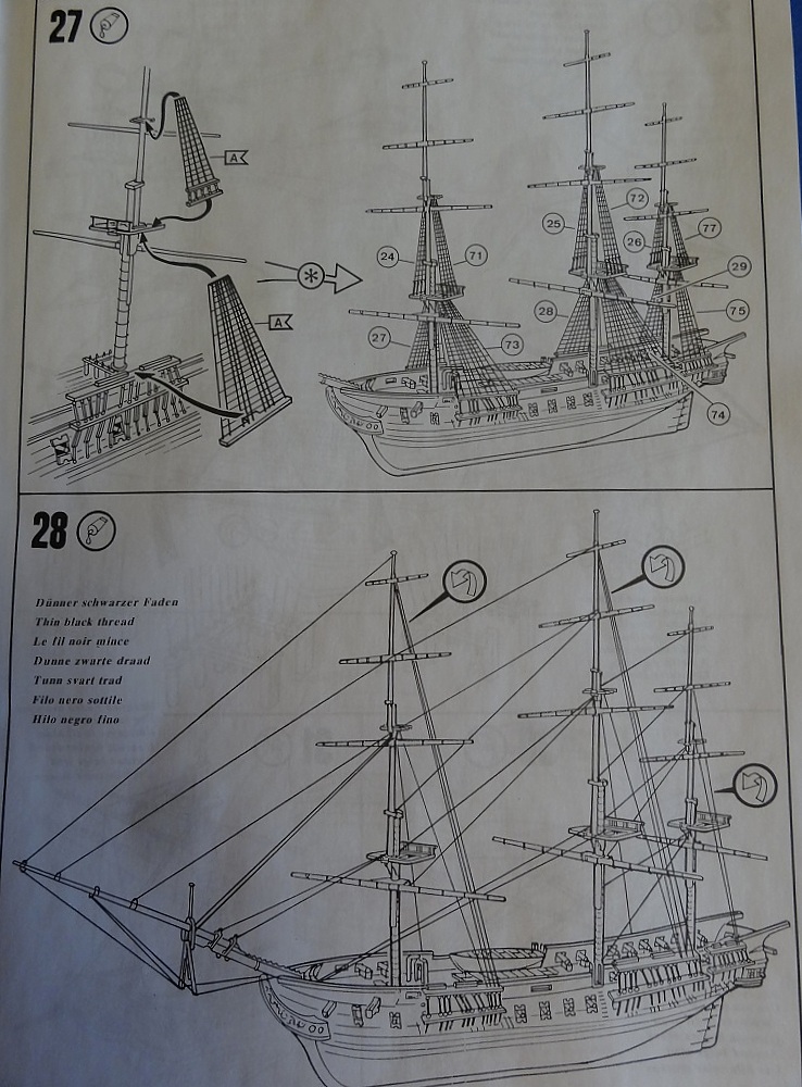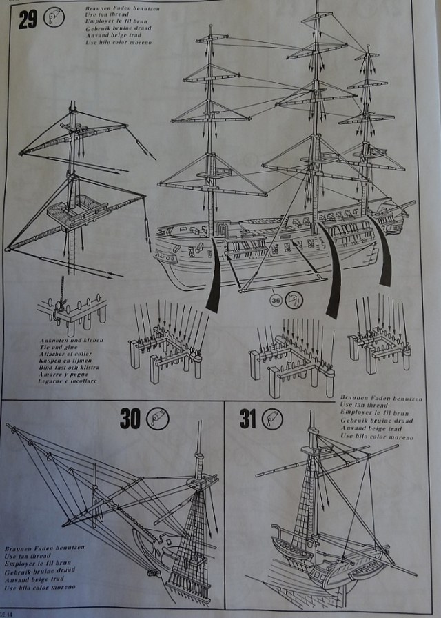 Инструкция хоть как-то показывает такелаж, в отличии от того же "Моделиста". Ванты -пластик это пожалуй плюс, не хочешь заморачиваться вязать нить,ставь пластик.