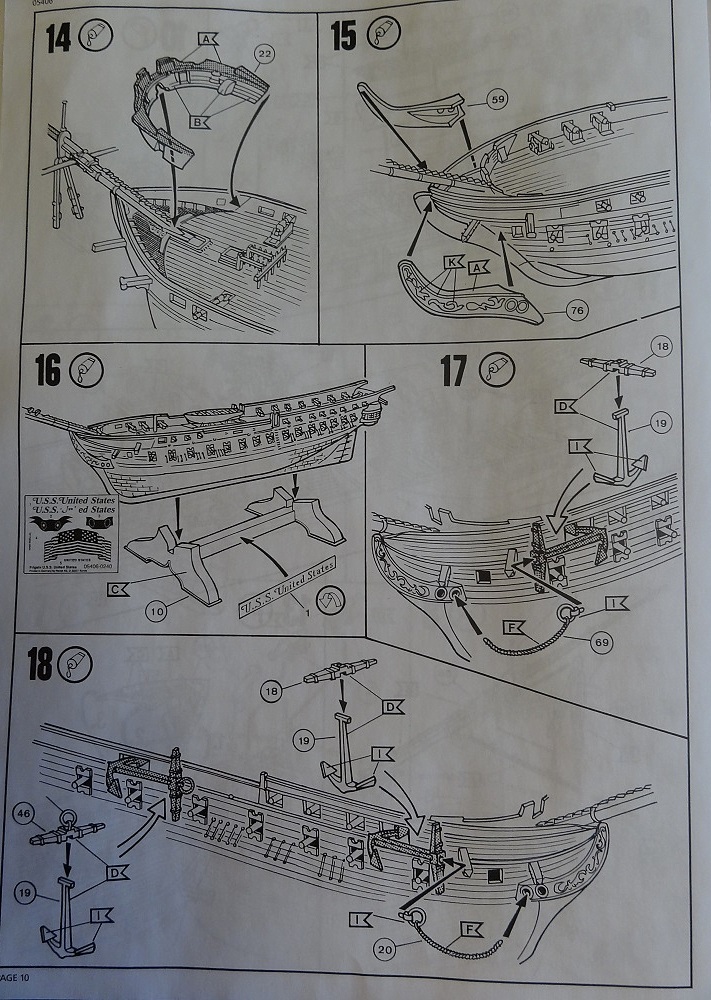 Вообще лично мне больше понравился корпус из набора "Конституции" в том же масштабе 1:146. В остальном набор "Штатов" лучше. Вакушки, ванты и деталировка более аккуратные.
