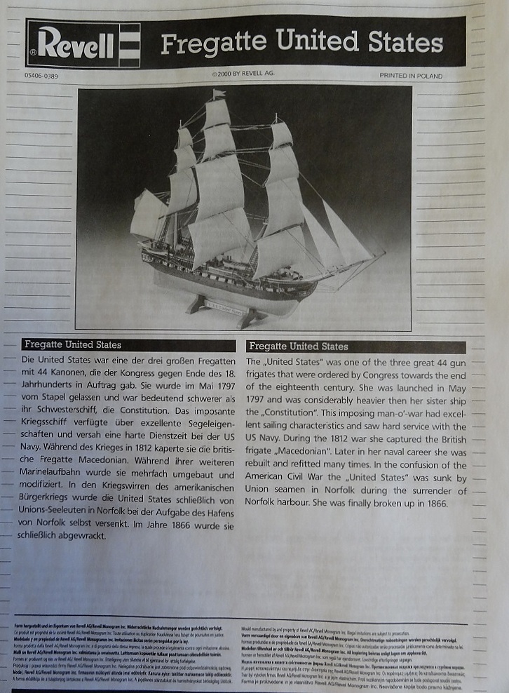 Сегодня хочу представить для вас обзор фрегата Военно-морских сил Соединенных Штатов Америки U.S.S "United States" от компании Revell в масштабе 1:150.