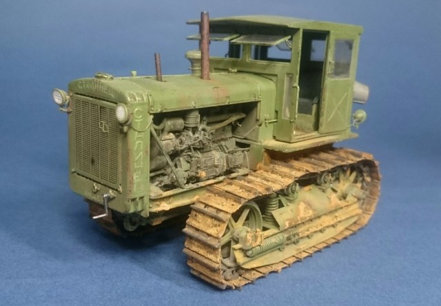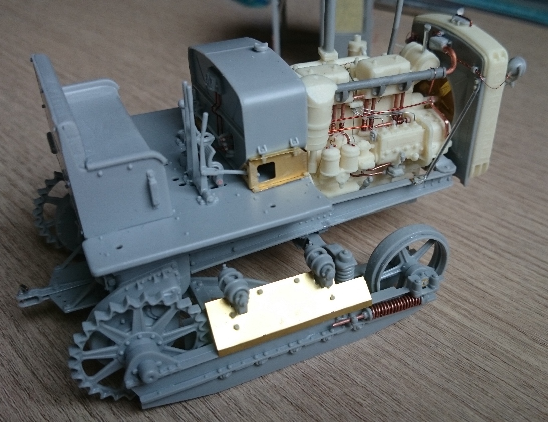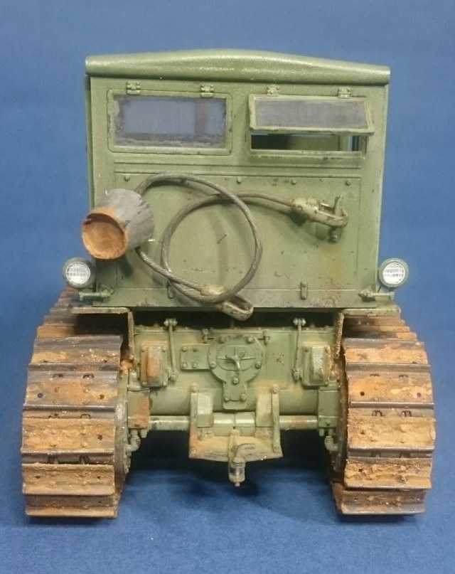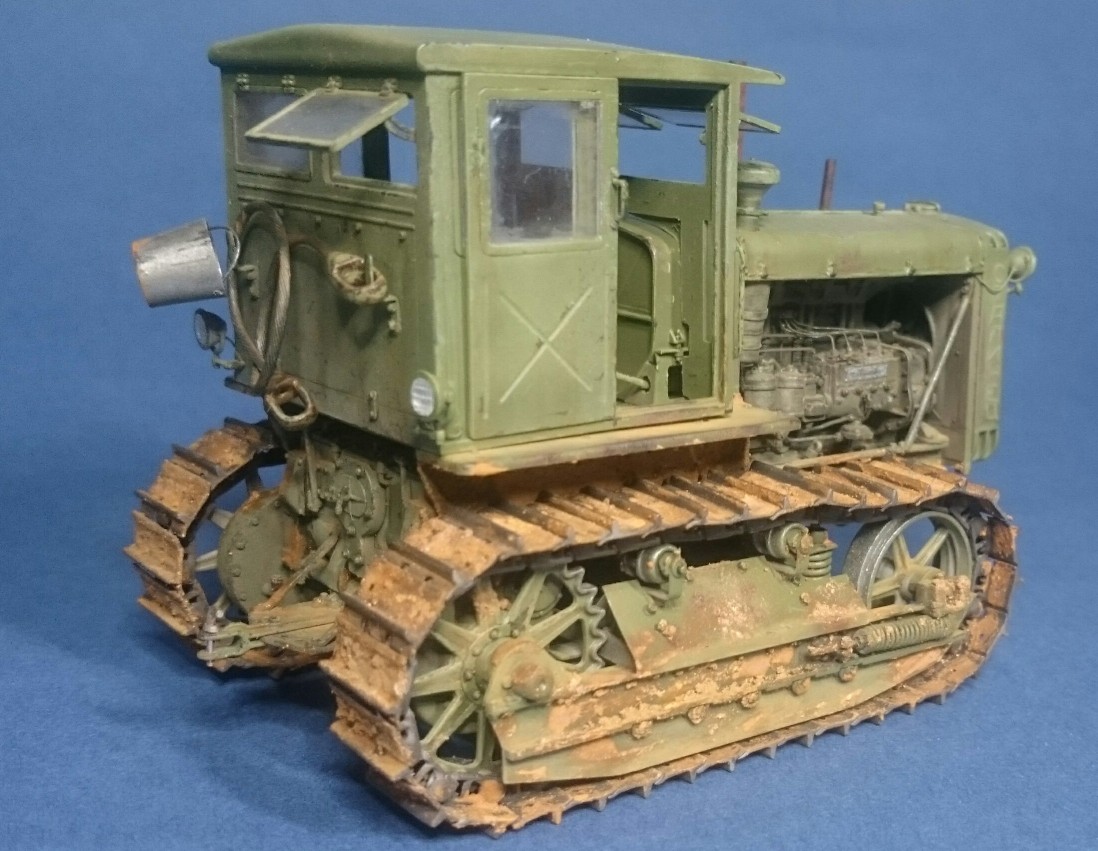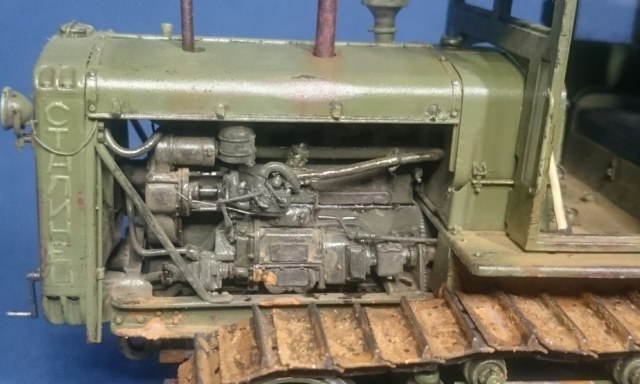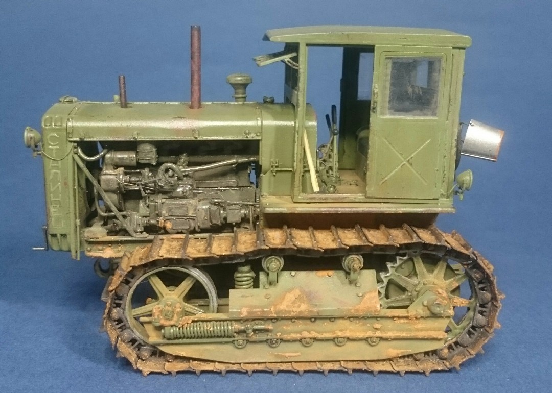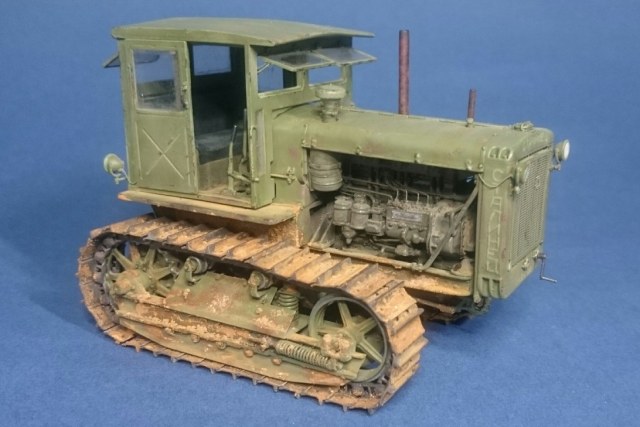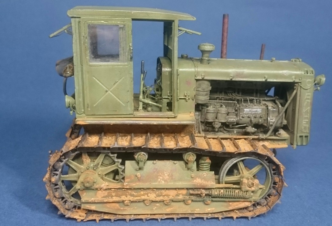 Добры день, коллеги. Представляю Вашему вниманию советского труженика – трактор Сталинец-65, производившегося на ЧТЗ в моем родном Челябинске. Набор от Trumpeter всем известный и особо рассказывать не чего. Работал с ним в 2017 г. и сейчас бы, наверное, многое сделал по другому. При постройке использовал набор L.Z. Models 35406 (двигатель с радиатором и фототравление), метизы, проволоку, трос от КВ-1 из заначек и самодельное ведро. Из доработок: топливные трубки, патрубки, толкатели клапанов с пружинами, рычаги и тягу пускача, кривой стартер и кардан от него к пускачу, проводку, пружину в ходовой, поручни кабины, ось педалей и так по мелочи. Высверлил выхлопные тубы. Это, что сейчас помню. Основное видно на фото. Проблем особых при сборке не было, кроме одной – не входил под капот воздушный фильтр. Пришлось немного сточить угол. Пошалил установив крюки на задней стенке кабины и повесил на них трос и ведро. Окраска: грунт и акрил Тамия, пигменты, ну и немного масляных пятен на двигателе, запылил стекла. Приятного просмотра.