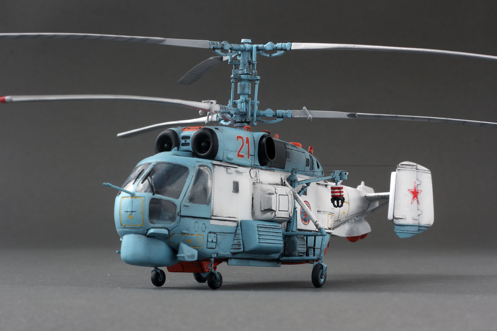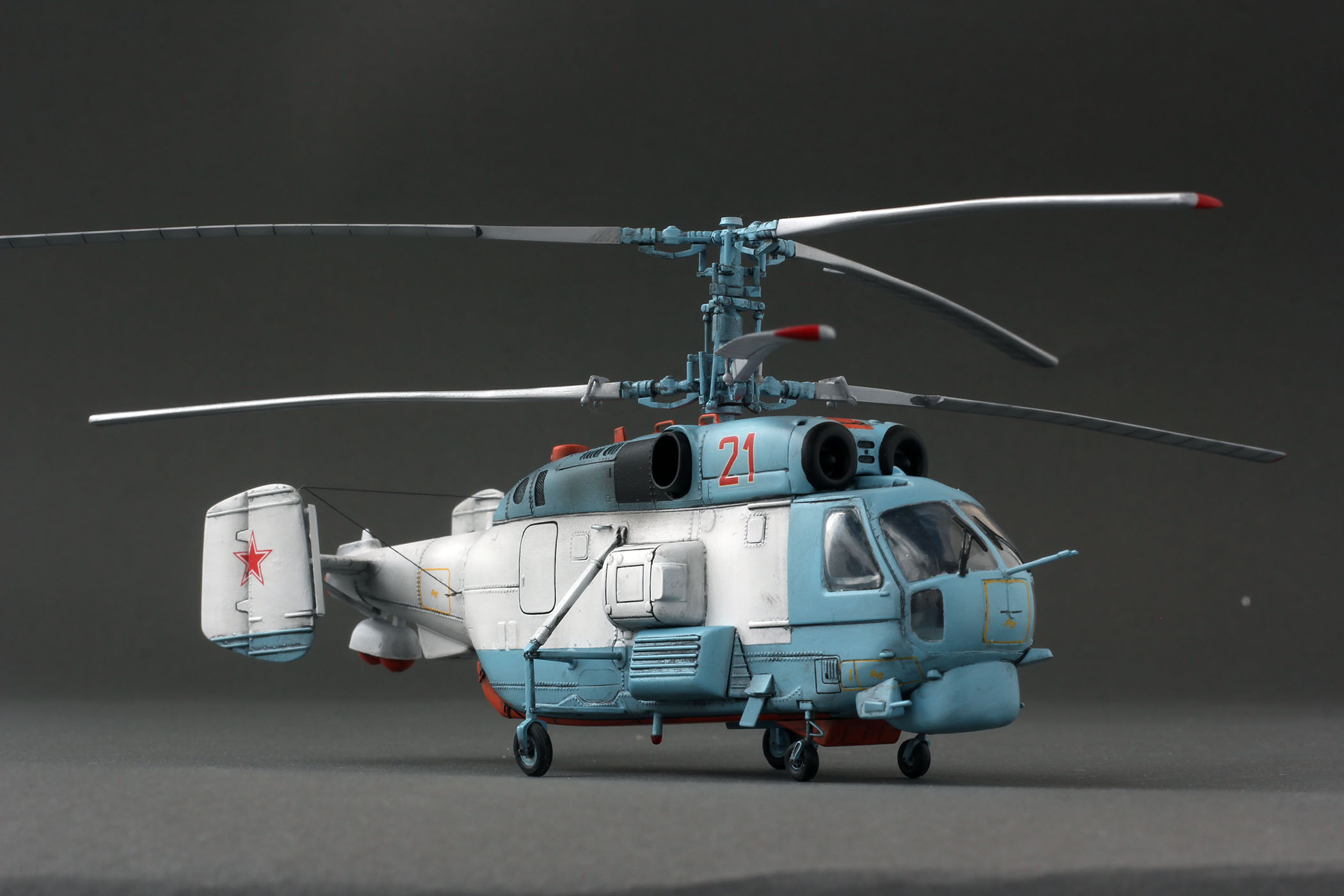 Владимир. Как изкоробка, получился классно вертолёт. Если бы я не знал материальной части, я бы сказал что модель СУПЕР. Есть конечно ошибки даже для изкоробки, но куда без них?