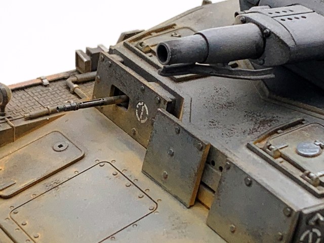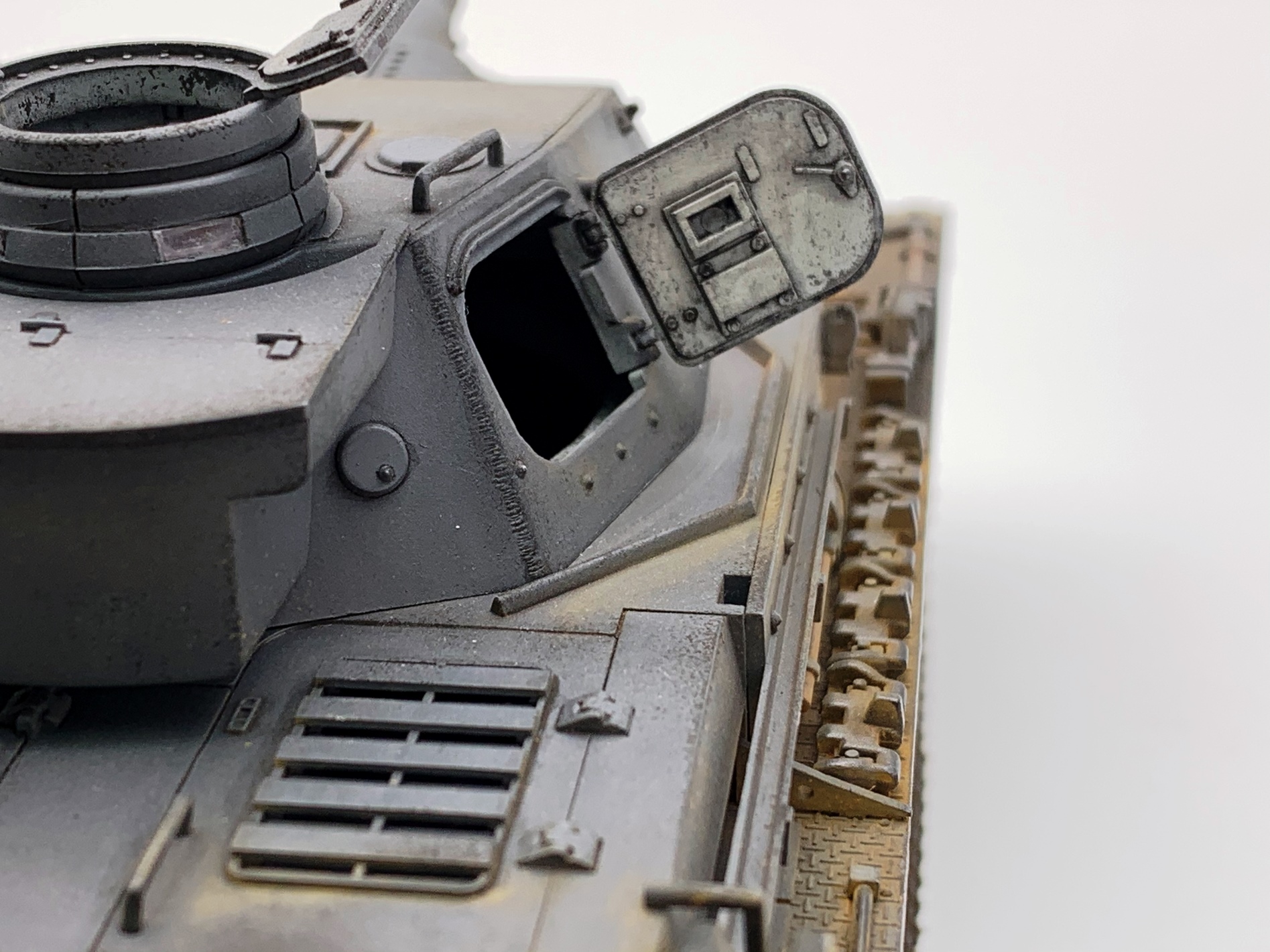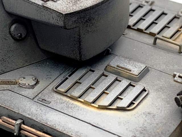 Обратите внимание на работу со светом и тенью на этапе тонировки. Попробуйте выделить люки и лючки светлыми оттенками масла, а области вокруг них наоборот затемнить.