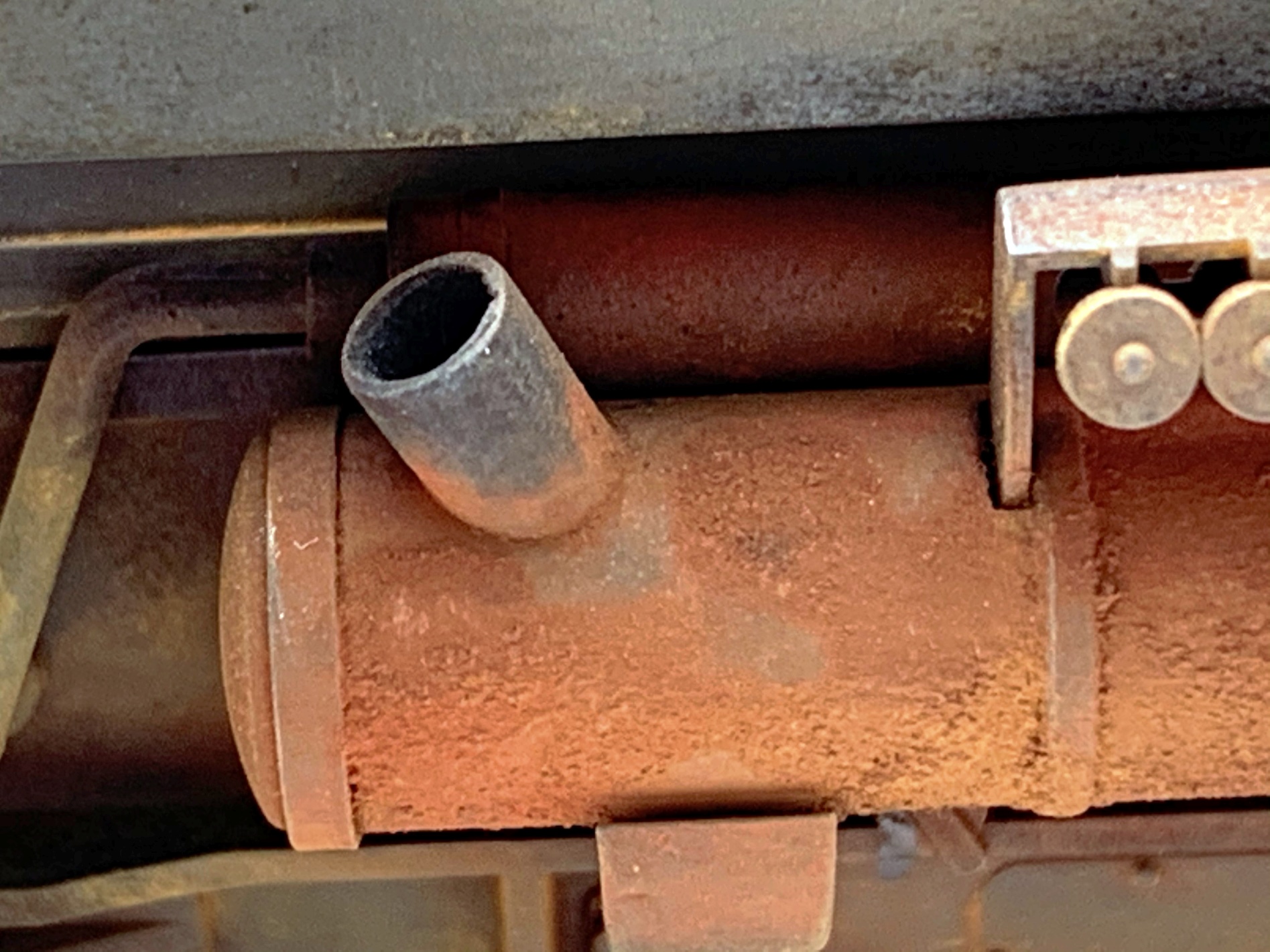 Из доработок - точеный ствол курсового пулемета, рабочий люк заряжающего (правый), ведро из "пивбаночной" жести.