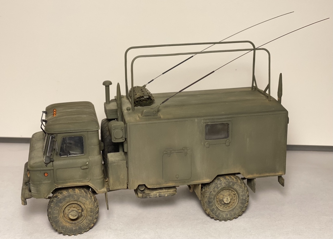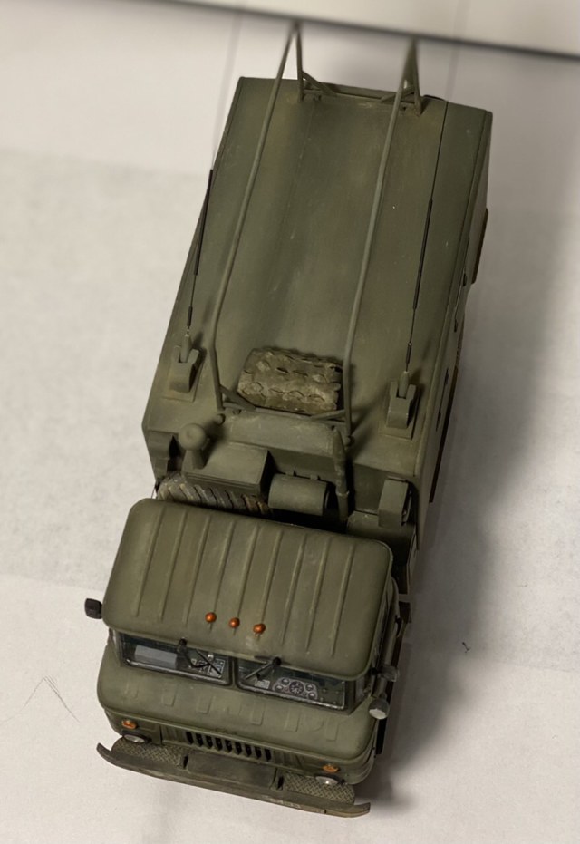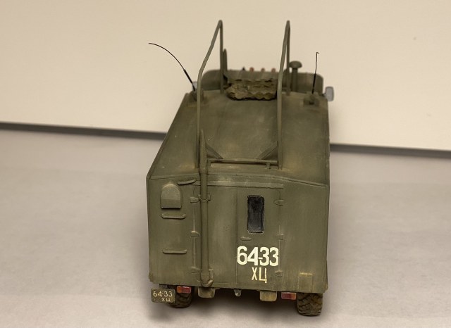 Далее на кунге незначительные доработки.. Перенес заднюю антенну на левую часть кунга, сделав крепления под нее, сделал так же поручни сзади кунга, про перенос навесного уже написал ранее..