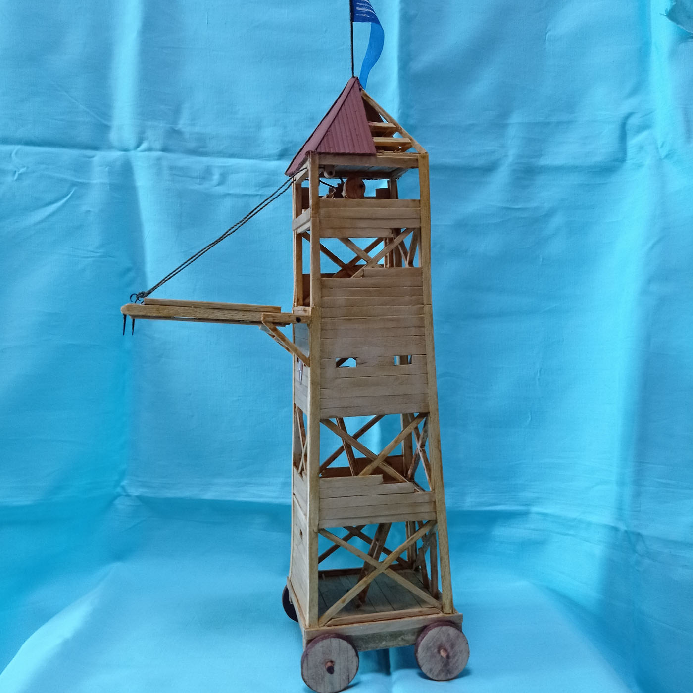 За габариты думал делать в сотом масштабе, но было бы довольно муторно делать лестницы и подъемный механизм моста. В таких размерах выточить надфилем ролики и храповик. Удовольствие то ещё, у меня зрение и так не ахти.