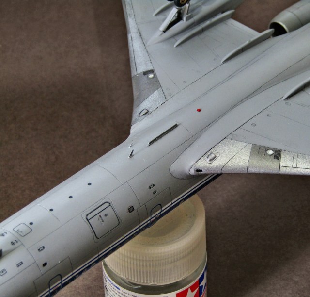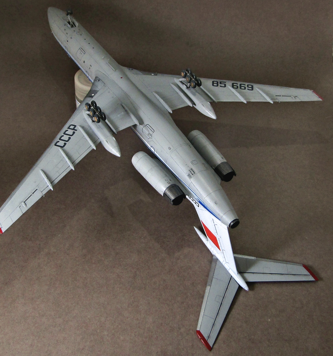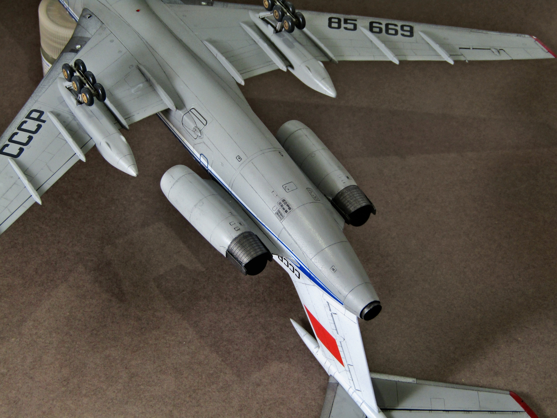 Возможно, слишком широкая зона серебрянки на нижних плоскостях в корневой части крыла. Вроде, панели с обтекателями выводов турбохолодильных установок, и окружающие их поверхности, были серые. Алюминий только на предкрылках.