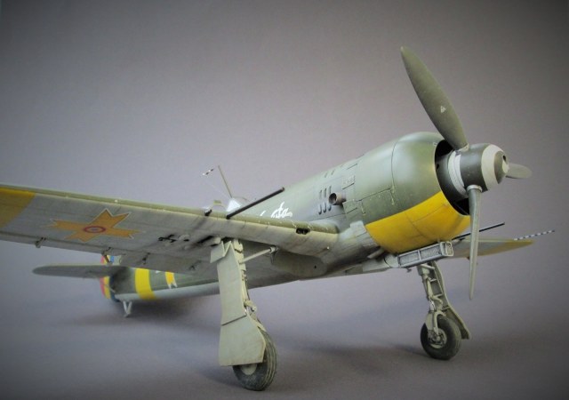 Доделки, переделки. Прорезаны жалюзи охлаждения, на модели весьма условно. Сточены внутренняя часть сдвижной секции фонаря и гаргрот под ним, иначе не становился как нужно. Доработан двигатель ,проводка, патрубки рассверлены , недостающие детали. Кабина, проводка, добавлены детали, травление, ремни, приборка "Яху",прицел доработан, тыльная часть приборной доски с проводкой. Сделал тоньше кромки всех поверхностей управления. Просверлены пистоны на полотняных поверхностях. Триммеры сделаны заново. АНО имитацию выполнил УФ.клеем. Прорезаны углубления в нишах под замки шасси. Сделан механизм фиксации .Зашпаклеваны узлы крепления бомбы, их не было на этой машине. Прорезаны гильзо и звеньесбросы Прорезано отверстие под выход воздуха маслорадиаторов, с имитацией внутренностей. Сделан дренаж и отверcтие под имитацию ручного стартера двигателя. Для крепления капота двигателя к самому двигателю в наборе ничего не предусмотрено. Согласно оригинальной схеме к тех.описанию самолета соорудил соответствующую конструкцию. Для этого сделал шайбу-кондуктор, вставил ее в отверстие носка обтекателя капота, внутри еще одно отверстие под кожух цилиндра ,который одевается на картер двигателя, все должно быть очень точно центрировано. После примерки ,для определения точного выхода цилиндра ,зафиксировал его в нужном положении относительно кондуктора. И приклеил к капоту. Сделал имитацию совка воздухозаборника перед кабиной. Расклепал планер. Часть расшивки восстанавливал, замыленная местами. Стволы заменил на металл. Сделал тоньше кронштейны их навески . Просверлил отверстия в кронштейнах щитков. Каждый пришлось подгонять по месту и увязывать с элеронами и щитками. Доработаны стойки шасси, подточены для нужного стояночного угла, проводка добавлена, сделал тоньше щитки, имитировал штоки цилиндров. Фильтр доработан, имитацией крепления к капоту и тросом управления заслонкой. Натянул антенну, предварительно сделал "колокольчики"(из 12, только 4 выбрал, они прозрачные и очень нехорошо видно пока не покрасишь некоторые огрехи, тянул нагретый прозрачный пластик на зубочистку).Сделал хомуты крепления сдвижной части фонаря и увязал с направляющими. И еще всякие мелочи разные. Не говорю о шпаклевке ,ее пошло не мало .Плюс постоянная подгонка с примеркой всего ко всему.))))))