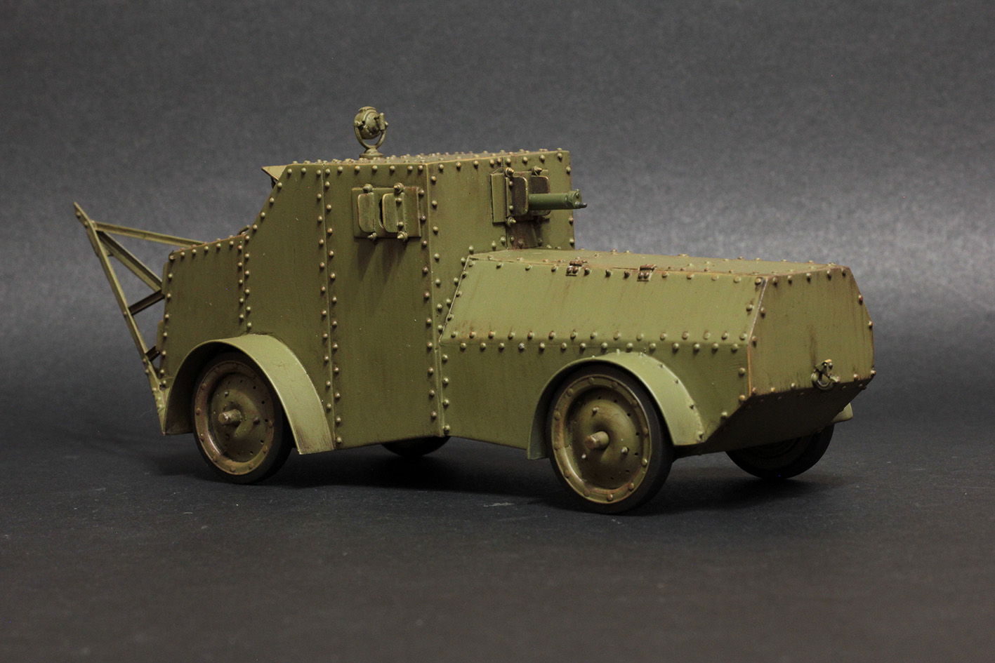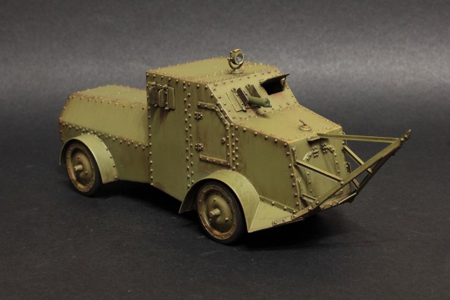 Модель полностью самодельная, включая колеса и заклепки, от донора была взята рама с мостами. Броневики Российской императорской армии — это отдельно взятая страница истории отечественной бронетехники. По мере сил и возможности буду продолжать эту ветку.
