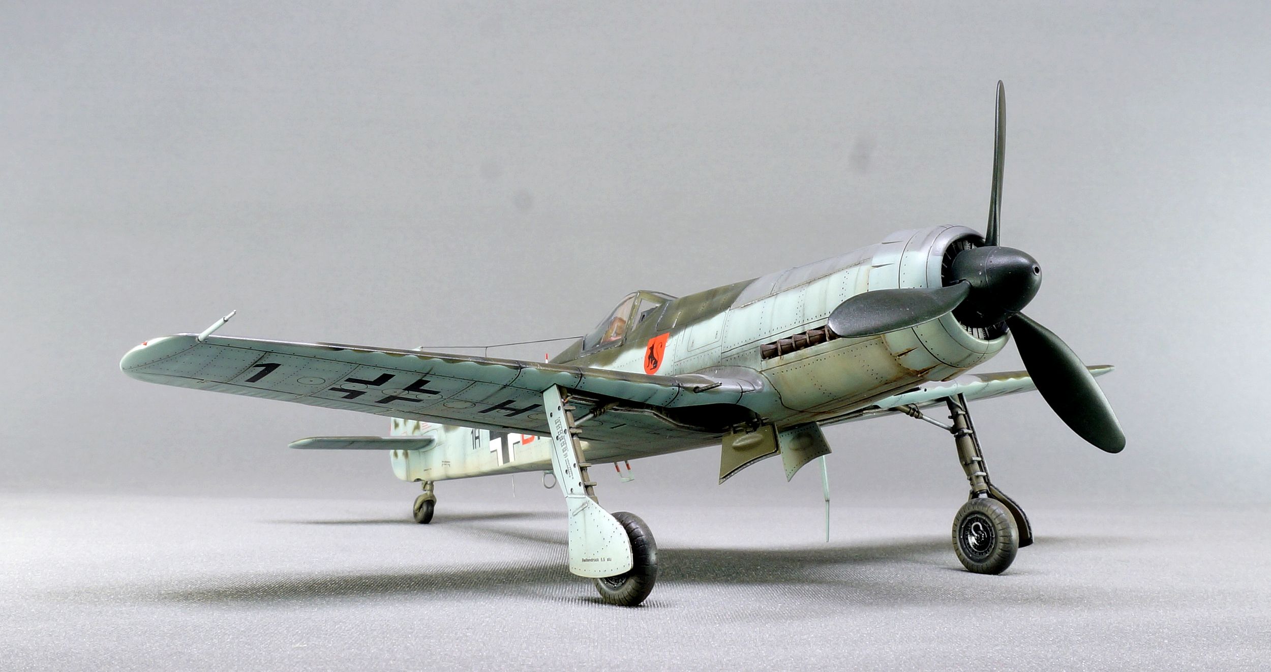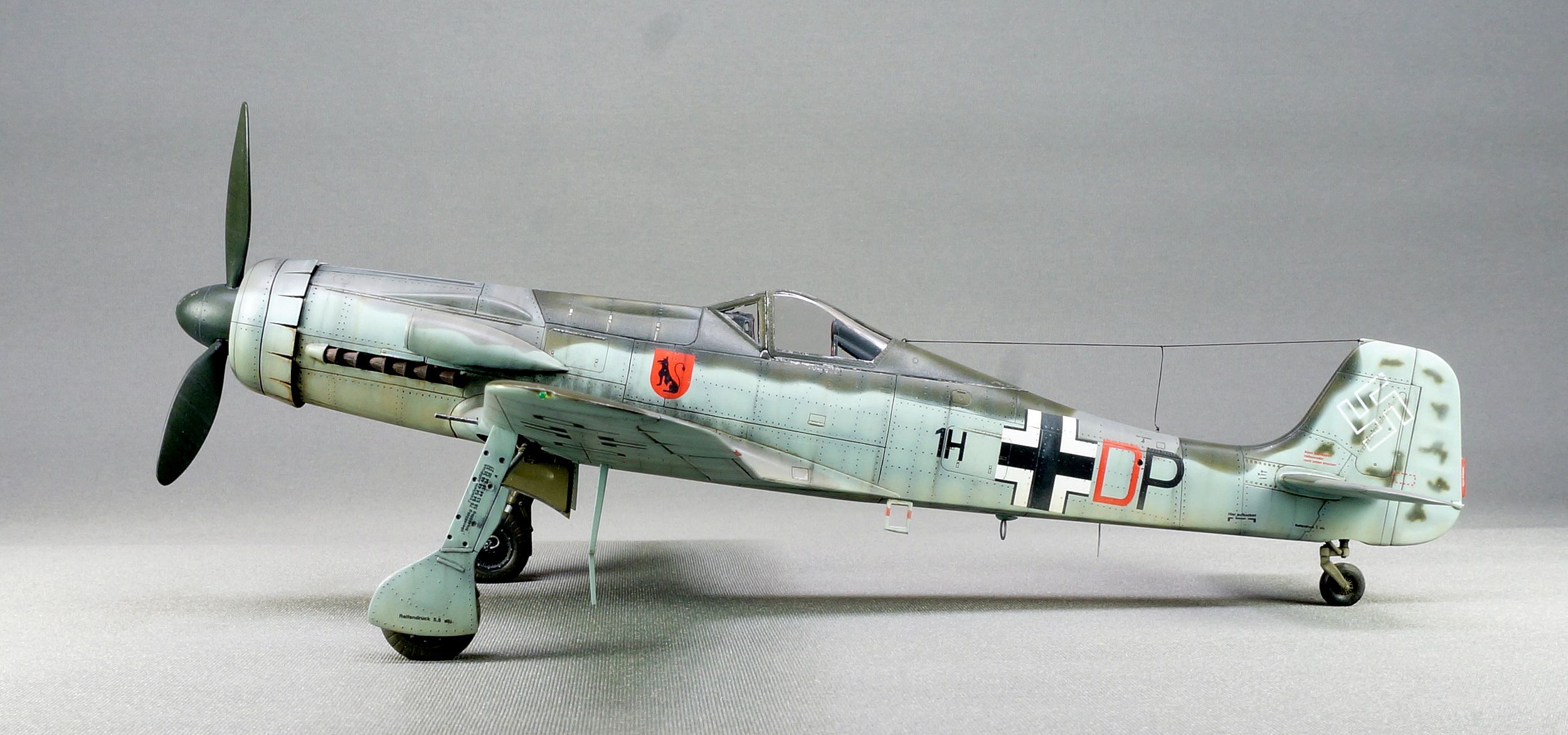 Oдин из представителей вундерваффе третьего рейха. Прототипа нет, три опытных образца в расчет не берем. Набор вполне нормального качества по стыкуемости, правда с пустеньким кокпитом и нишами шасси. С кабиной сильно не заморачивался, поэтому сделал ее закрытой. Через ниши хорошо просматривается фюзеляжное пространство, производитель дает только заднюю часть двигателя, посему добавил проводки и пушку Мк-108 стало поинтересней. Накатал клепку, стволы из мед игл, бросил тормозные шланги на шасси, бано из шпажек, так сказать стандартный набор доработок. Угол стоек маловат но было уже поздно, кто будет собирать переделывайте сразу шток цилиндров убора шасси они длинные, что не дает сделать нормальный угол стоек.