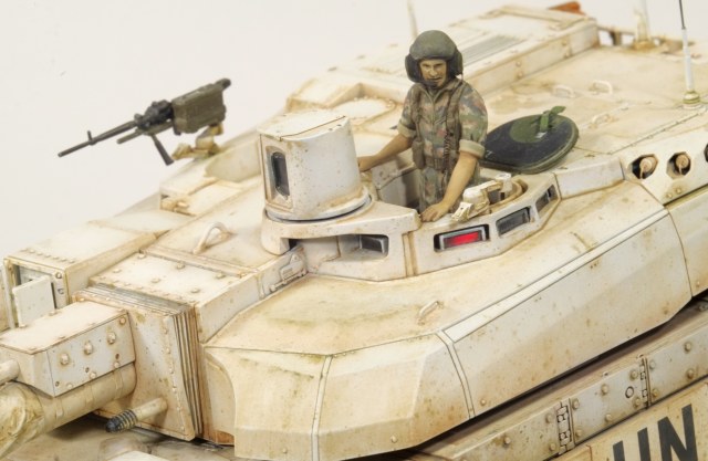 Пришлось сделать пересадку головы, новую голову позаимствовал у танкиста от тамиевского Челленджера 2, поэтому француржик подозрительно похож на своего коллегу с моего же Челленджера )))