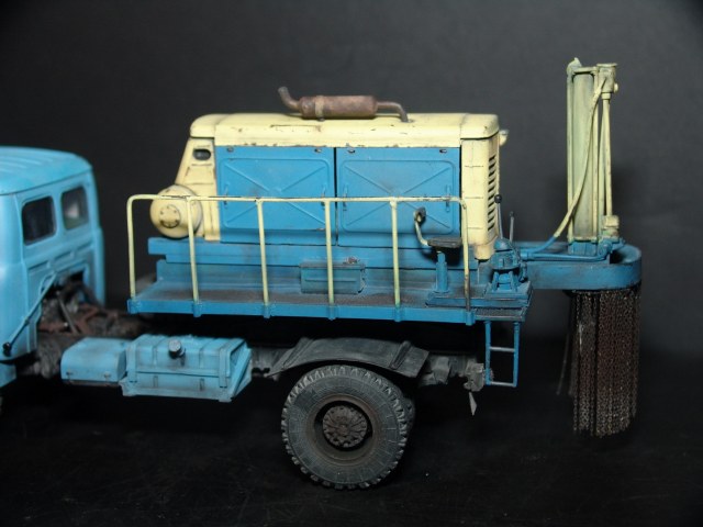 Закончил очередную модель асфальтобетонолома Д-198 на базе МАЗ-500. Установка применялась для разрушения старых асфальтовых или бетонных дорожных покрытий до 250 мм. Установка была разработана в 60-х годах для автомобиля МАЗ-200, позже устанавливалась на МАЗ-500. Для модели использовал модель МАЗ-500, компрессор ЗИФ-55 и декали от Red Iron. В дальнейшем модель пойдет на диораму.