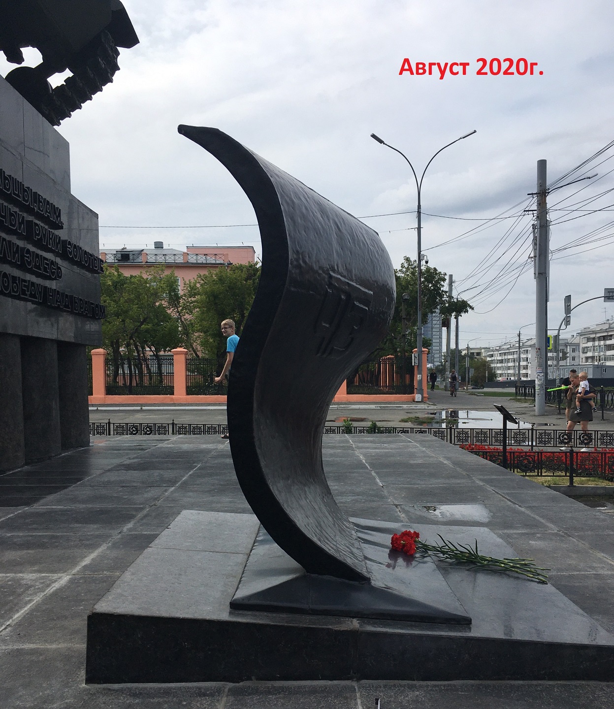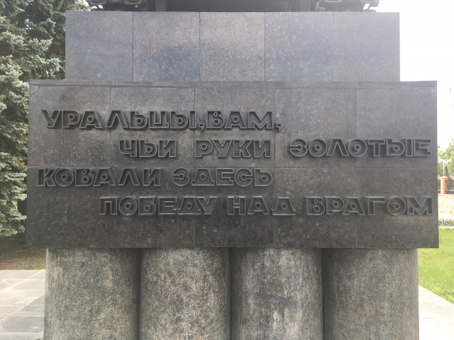 "Уральцы, вам, чьи руки золотые ковали здесь победу над врагом" Челябинск, Комсомольская площадь